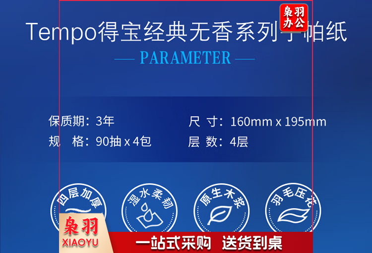 得宝(Tempo)T2275 抽纸天然无香4层90抽3+1包/16提软抽纸巾抽取式纸面巾