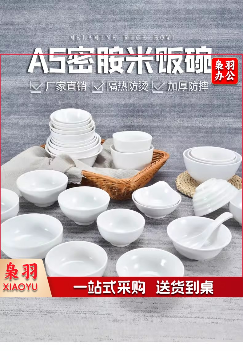 密胺碗塑料小碗商用米饭碗粥汤碗饭店餐厅食堂专用白色仿瓷碗餐具