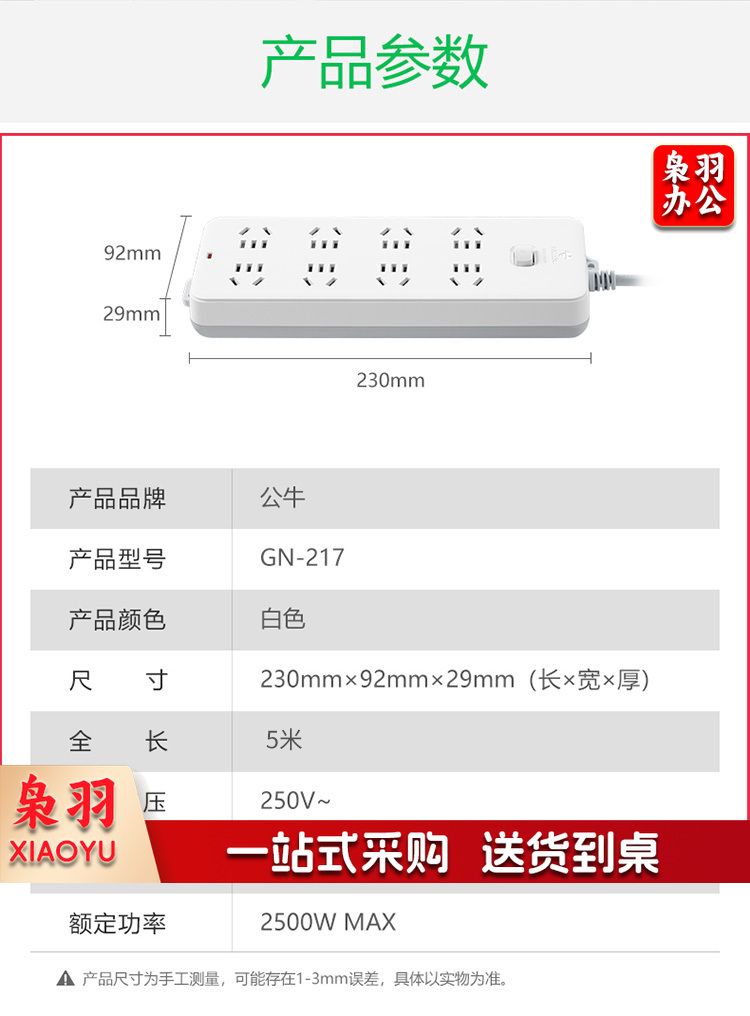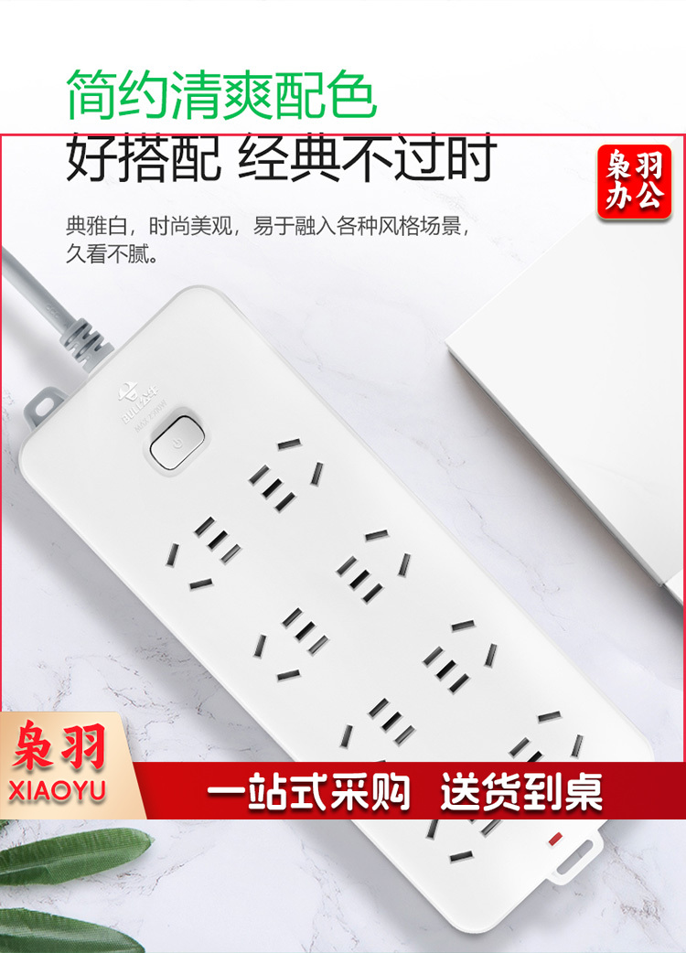 公牛(BULL)新国标插座/插线板接线板 8位总控全长5米 GN-217
