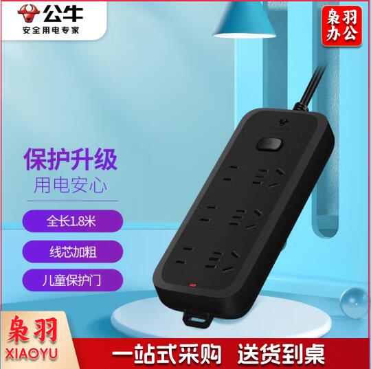公牛(BULL)插座/插线板/插排/排插/接线板/拖线板 黑色质感 6位总控全长1.8米 GN-B8330H