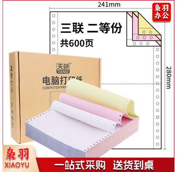 天色 撕边电脑打印纸三联二等分出库送货单/发票清单彩色针式打印纸