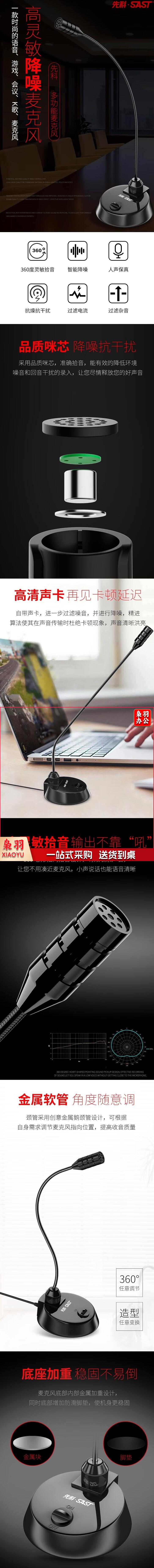 先科(SAST)鹅颈式会议麦 麦克风话筒台式有线桌面 OK-30 6.5MM有线会议麦克风