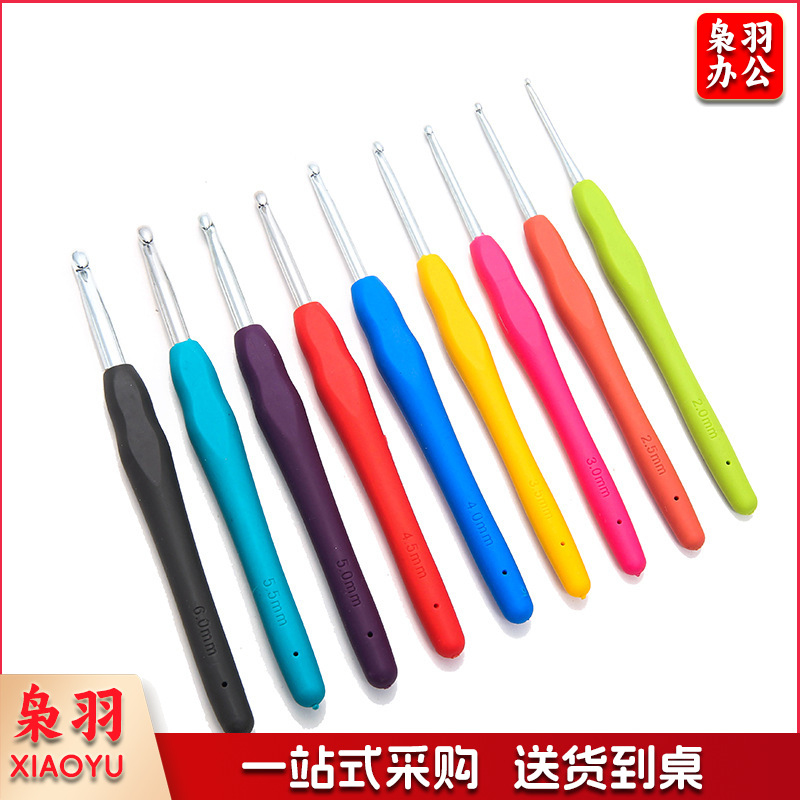 手工编织彩虹软柄钩针 TPR软柄钩针实心软柄铝钩针 (20根起定 2-6mm)