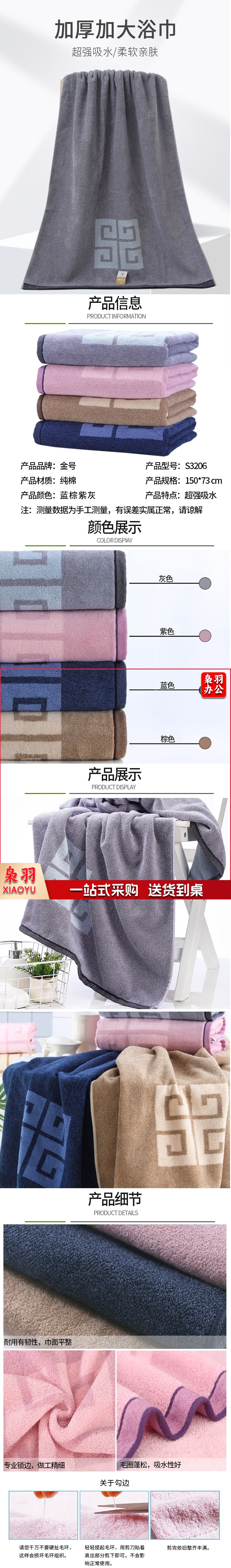 金号 S3206 加大加厚浴巾 150*73cm 颜色随机 单位:条