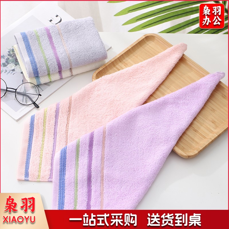 毛巾家纺 竹浆纤维方巾柔软吸水小毛巾洁面巾 彩条方巾 3条装