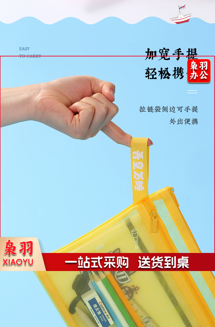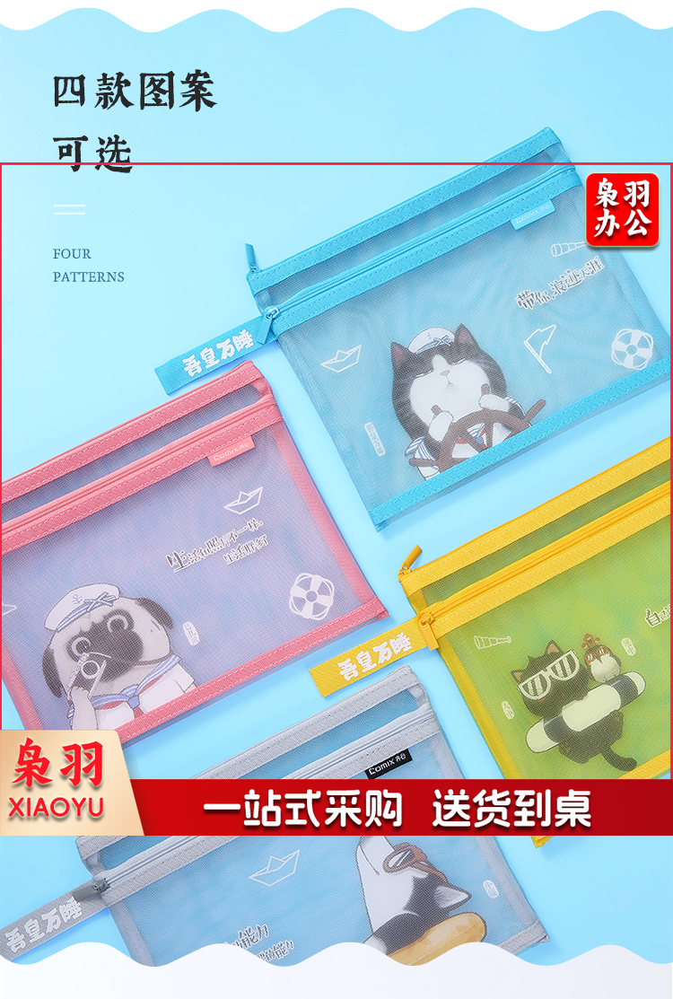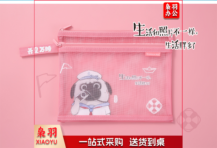 齐心(Comix)吾皇万睡A5文件袋透明双层网纱拉链袋档案袋办公资料袋试卷票据收纳袋 灰色WHA3368