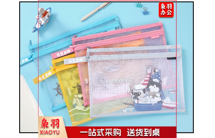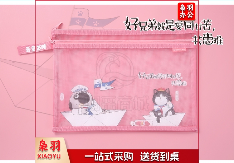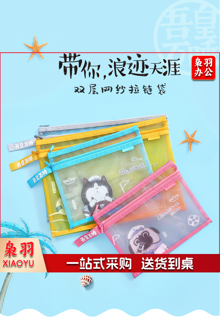 齐心(Comix)吾皇万睡A4文件袋透明双层网纱拉链袋档案袋办公资料袋试卷票据收纳袋 灰色WHA3367