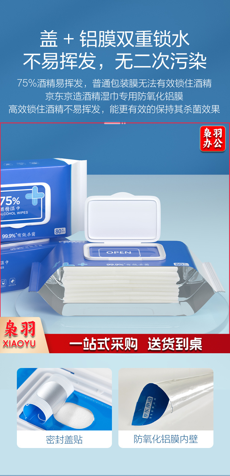 京东京造 75%酒精湿巾80片* 杀菌湿巾 湿纸巾 卫生湿巾 消毒湿巾 酒精棉片