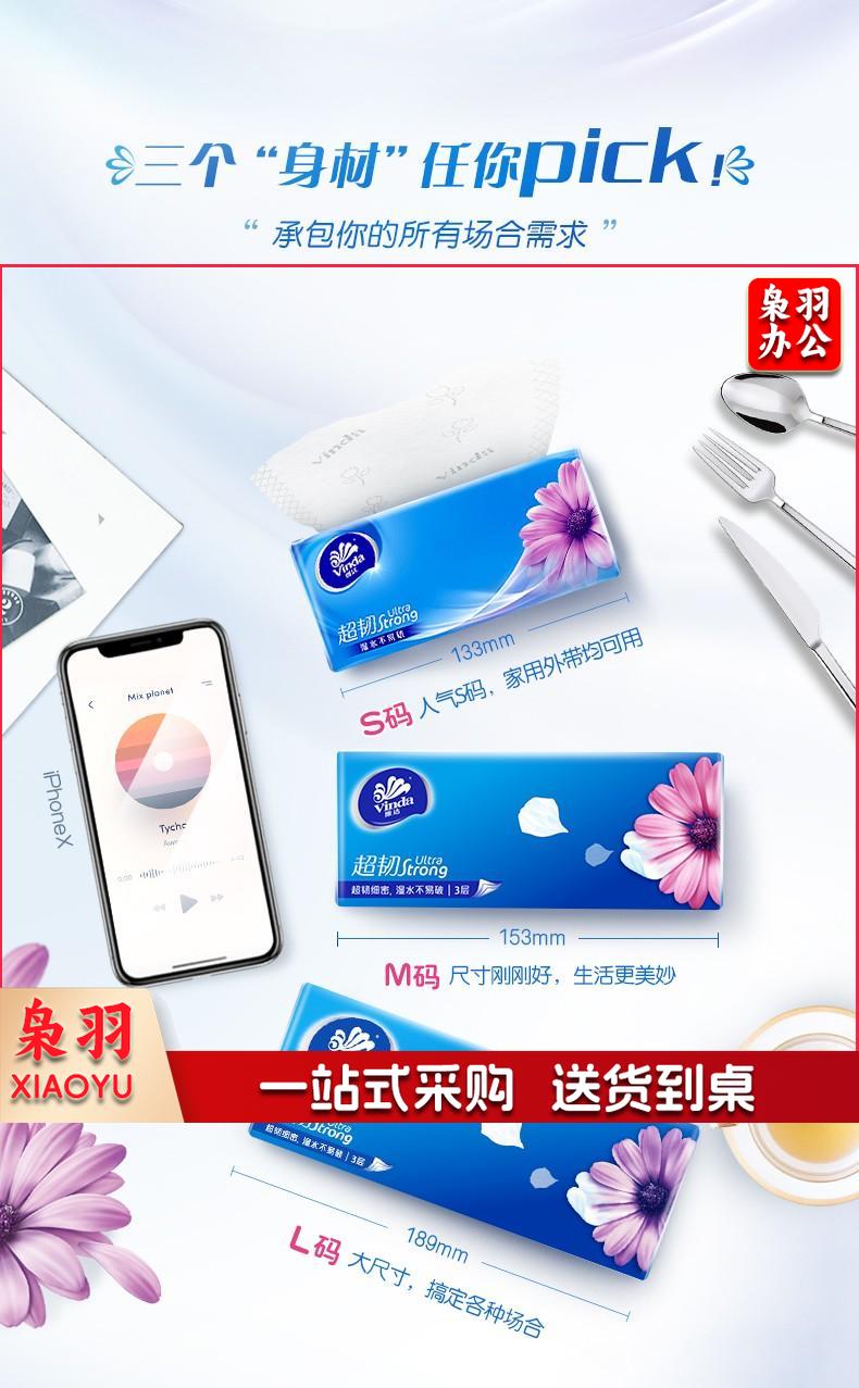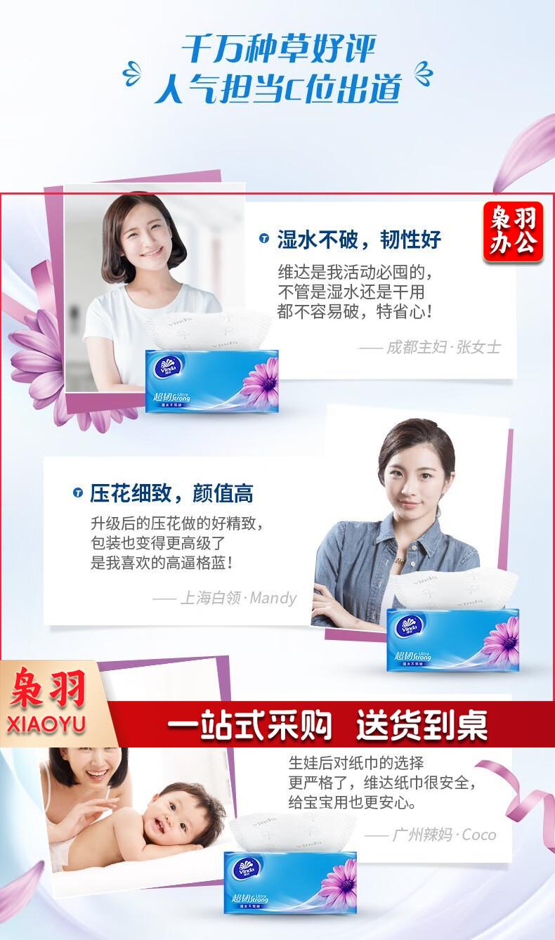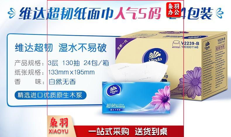 维达抽纸蓝色经典3层130抽纸巾 133mm8195mm 6包/提 2提一箱4提S码3层130抽*12包提装