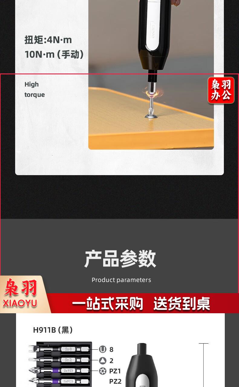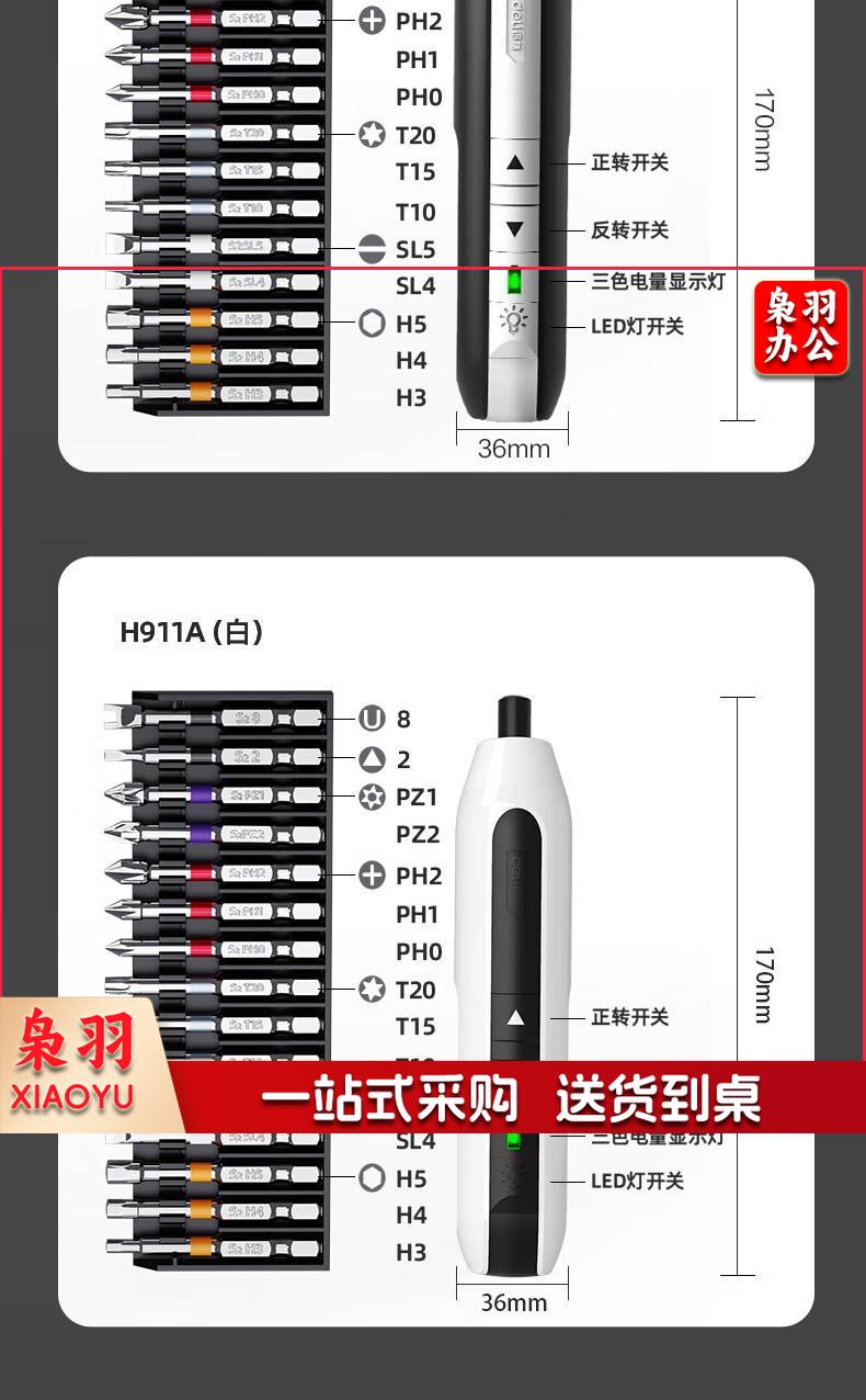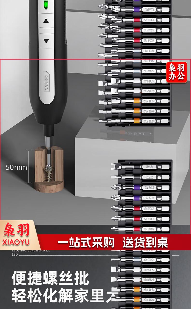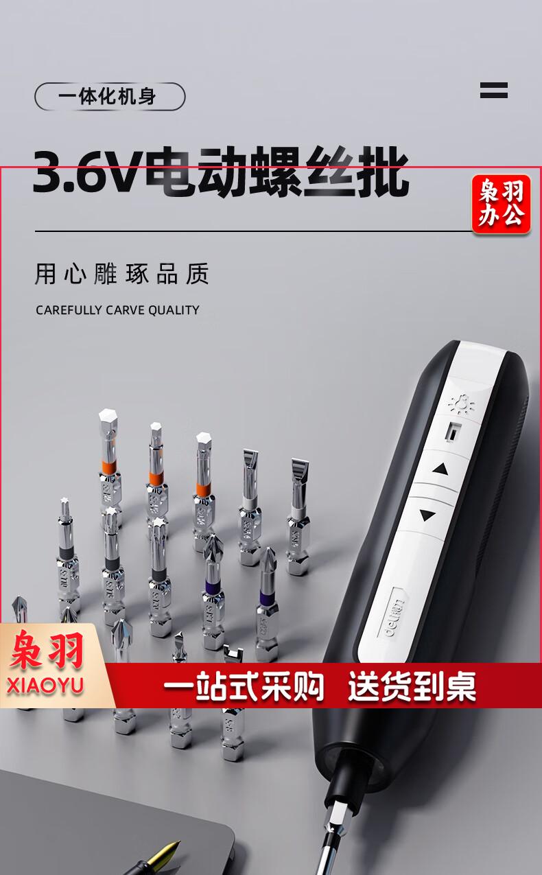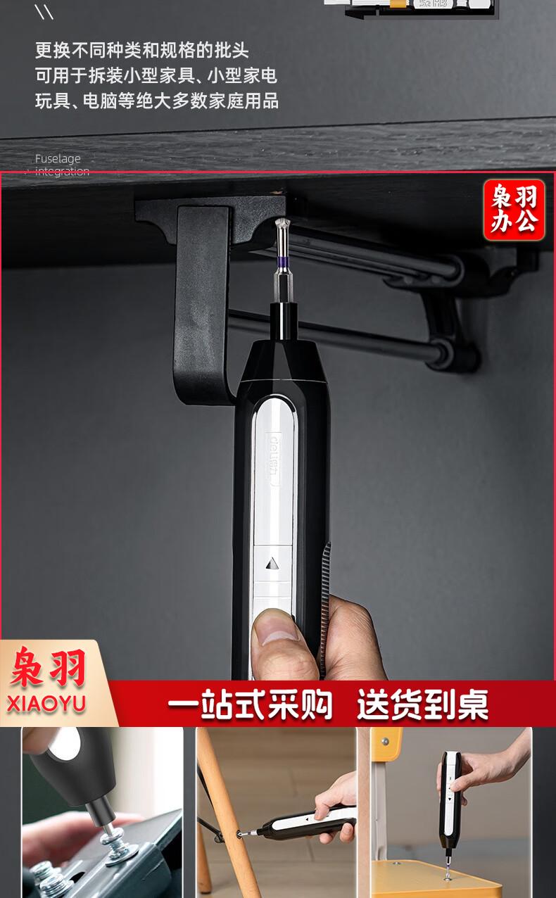 得力(deli) 笔式3.6V无线锂电电动螺丝刀套装充电式起子机电讯维修家用电动工具组套黑色 H911B