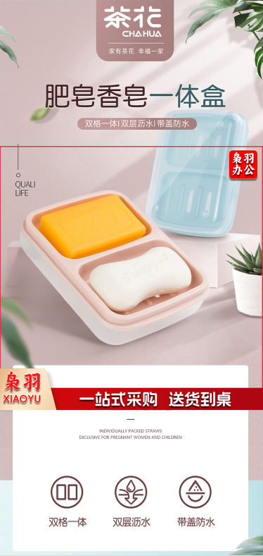 茶花 肥皂盒 皂碟肥皂架子香皂架 双层沥水香皂盒子 双格