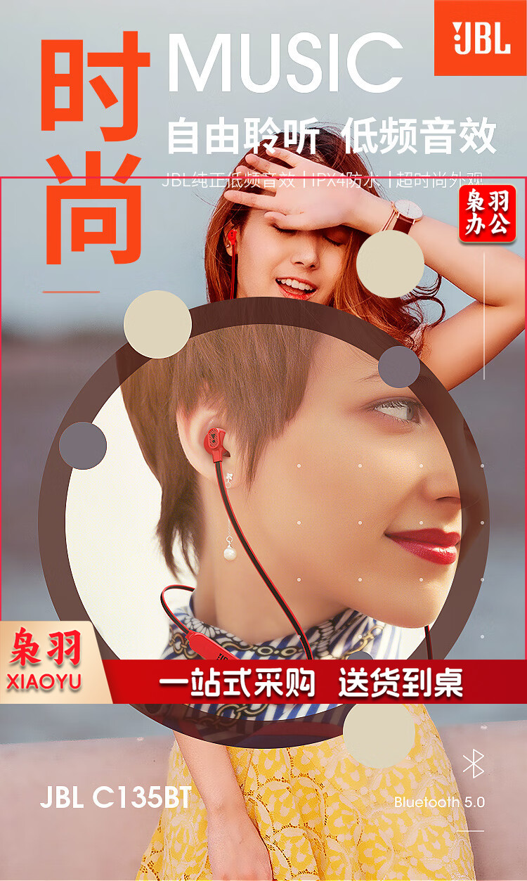 C135BT 入耳式防水防汗无线蓝牙耳机 快充磁吸运动耳机游戏耳机 苹果安卓手机耳机 青春红
