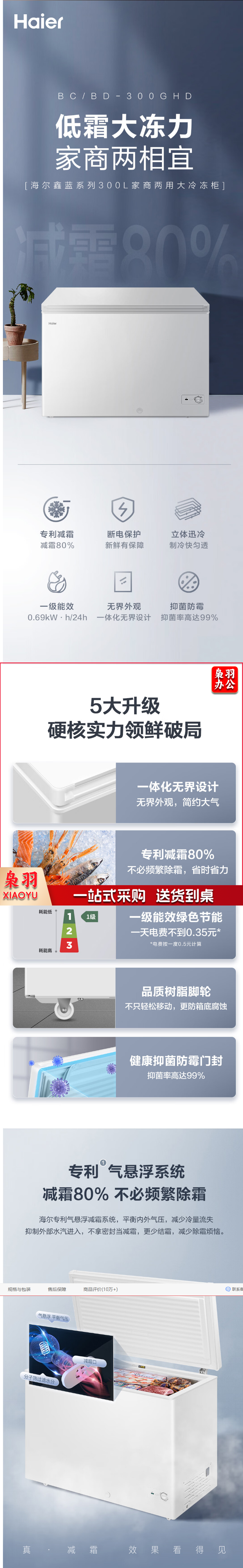 海尔(Haier)300升低霜卧式商用家用冰柜 商用大容量 冷藏柜大冷冻柜冰柜家用冰箱大冷柜BC/BD-300GHD