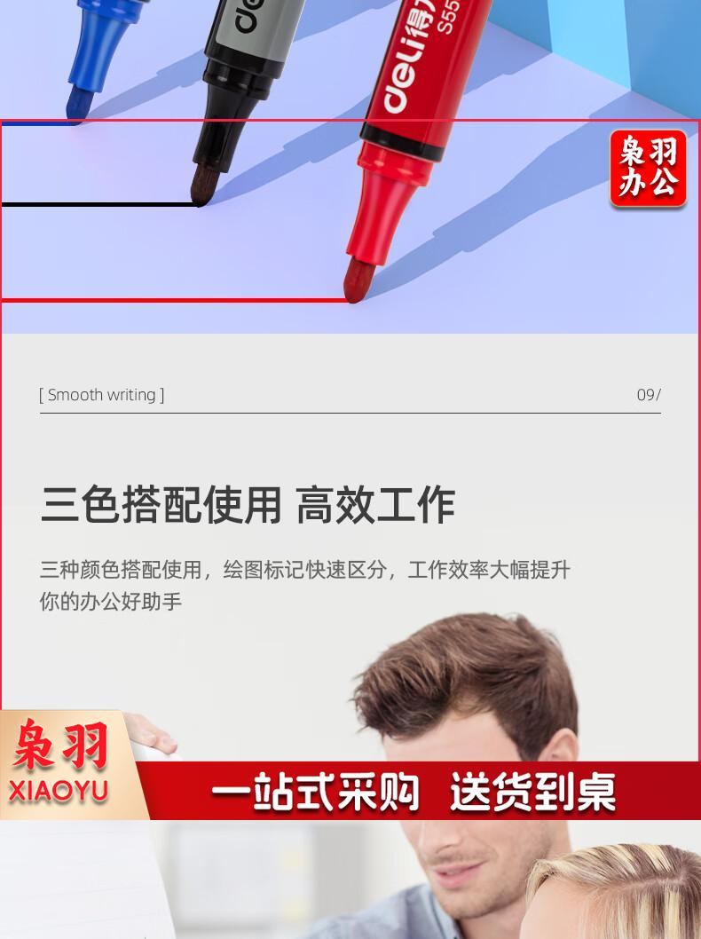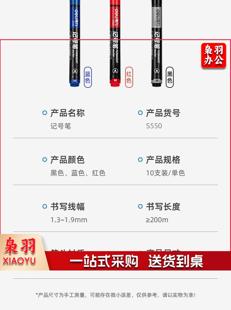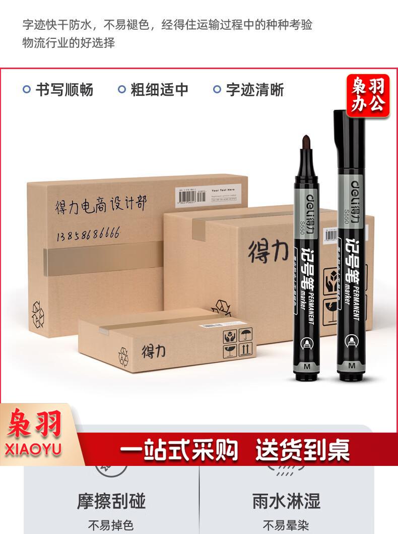 得力(deli)黑色油性粗头记号笔物流大头笔 签名笔马克笔办公用品 10支/盒 S550耐光防水黑色10支