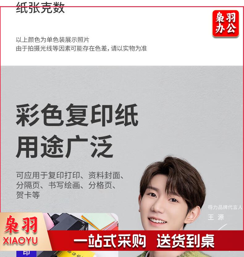 得力(deli)A4 彩纸非厚卡纸儿童手工纸剪纸打印纸 500张/包