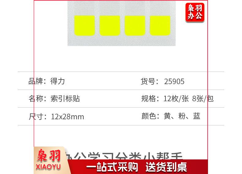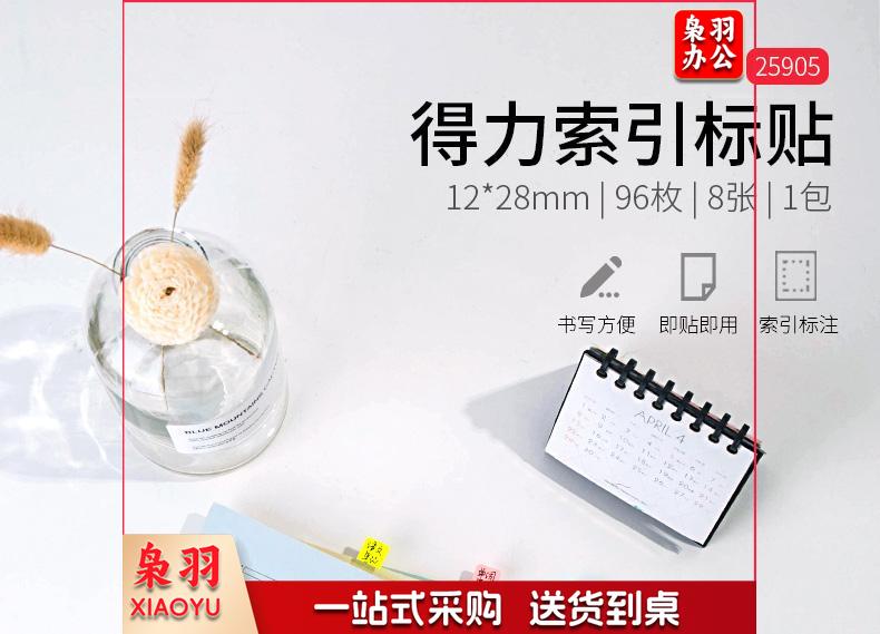 得力(deli)96枚3色索引标签贴指示贴 归类便利贴记事贴 28*12mm 25905索引标签贴-小号-96枚