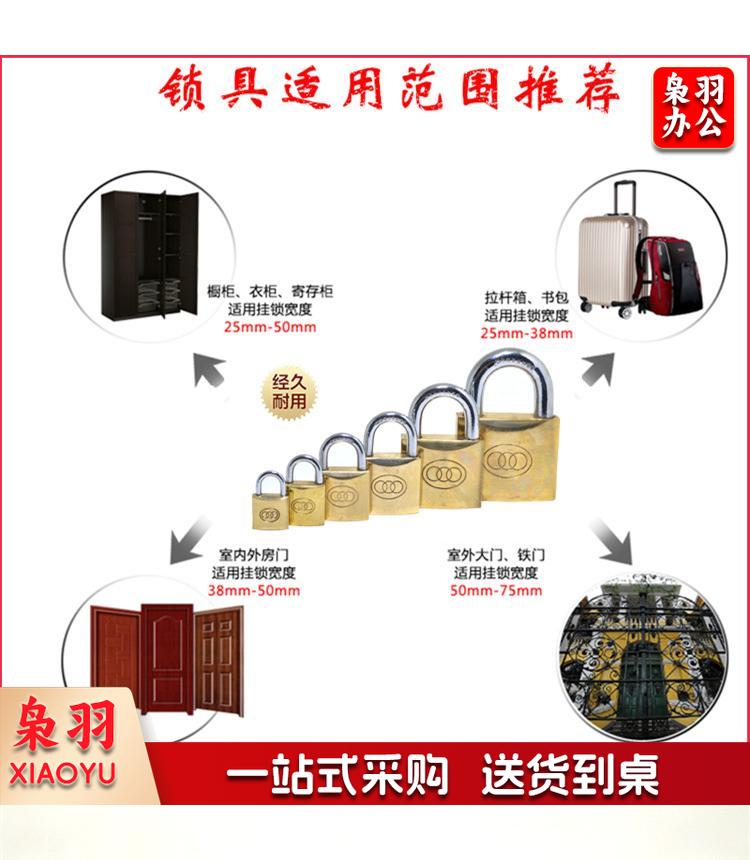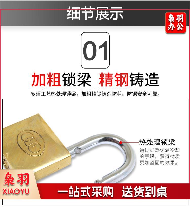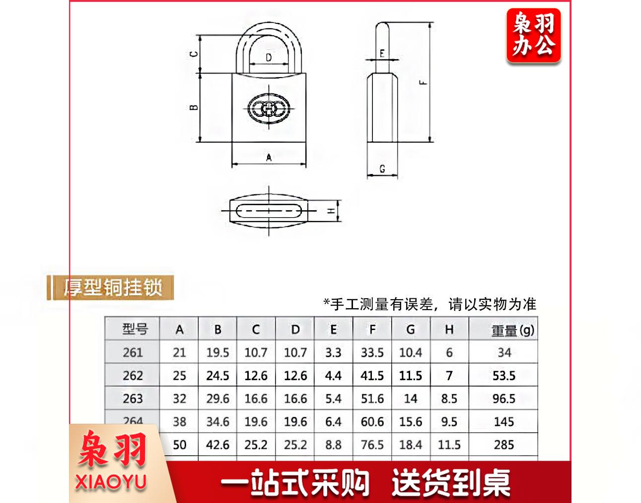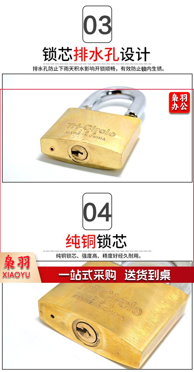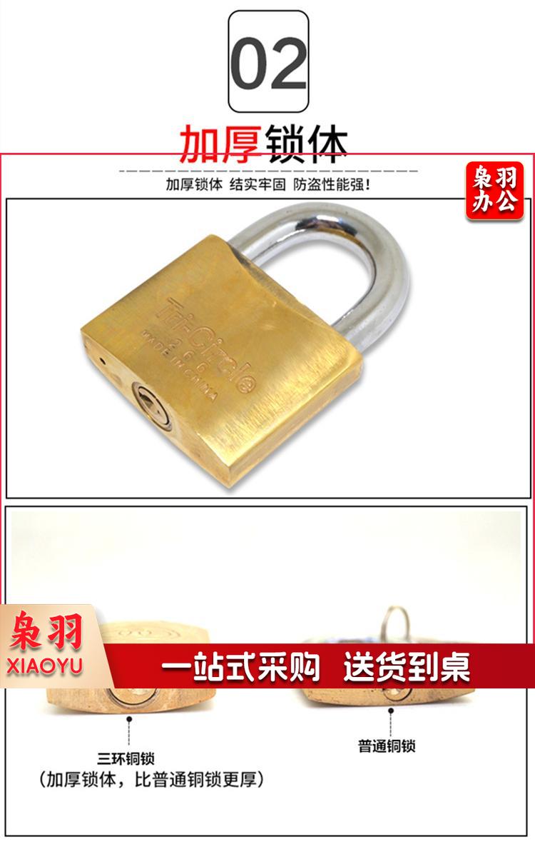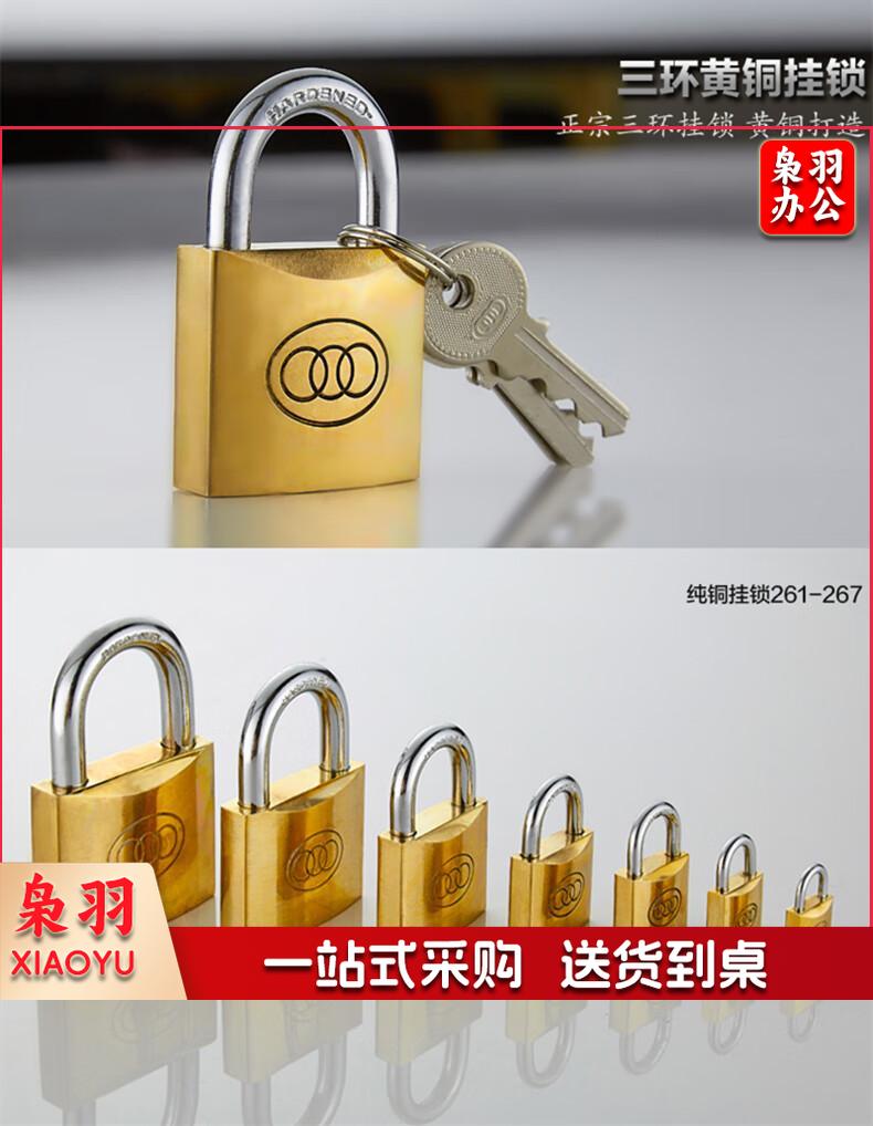三环 厚型铜挂锁263(32mm)抽屉仓库大门黄铜锁具 宿舍柜子防盗锁头 不通开铜锁 短梁挂锁+3把钥匙