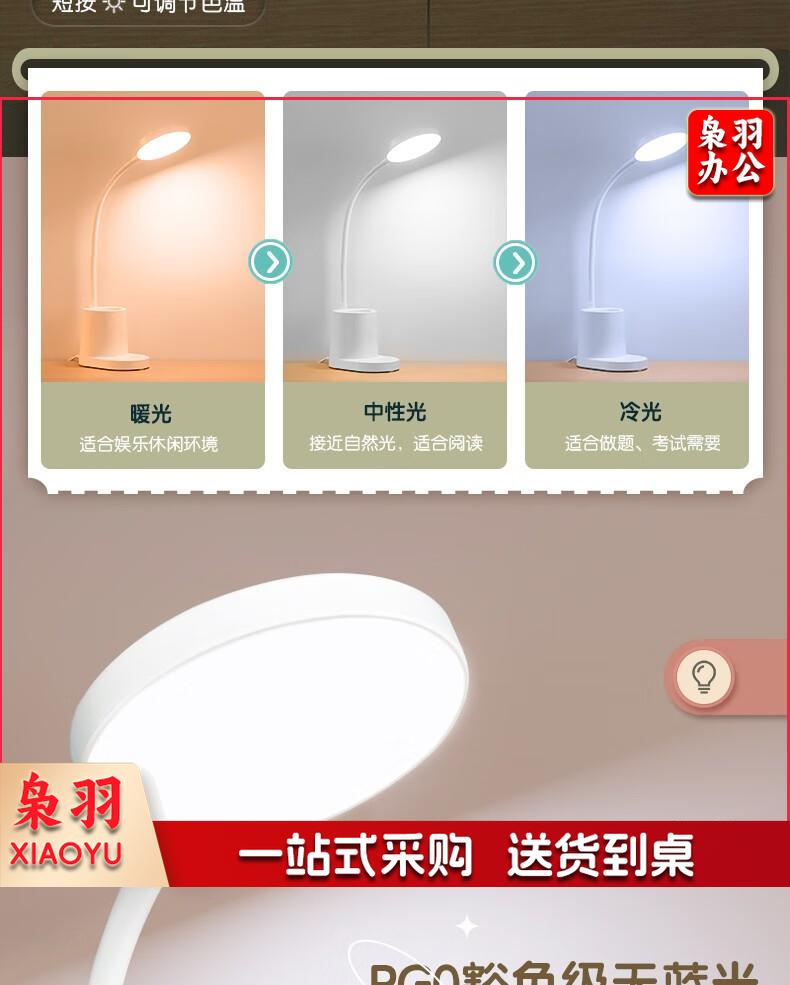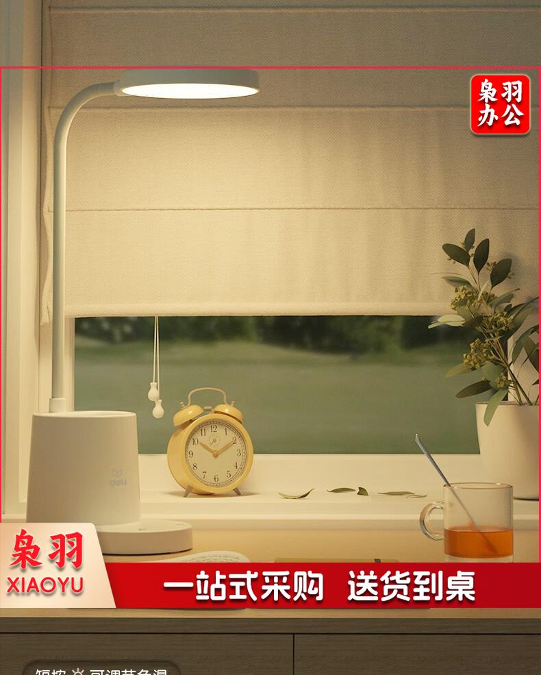 得力(deli) LED笔筒台灯护眼宿舍书桌学习用可充电插电触控床头小夜灯三挡调节学习专用 【云朵白】插电款 4315