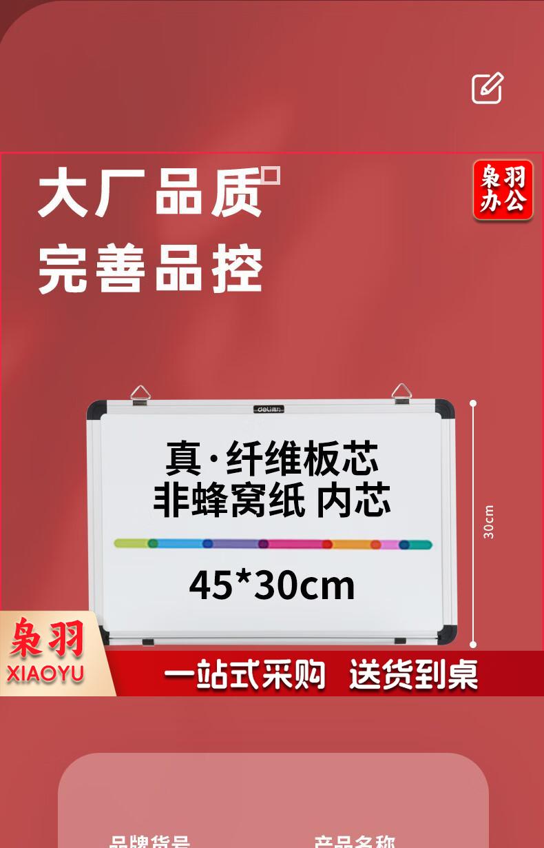 得力(deli)45*30cm小白板 小黑板 易擦磁性家用儿童挂式白板悬挂式 白板写字板 小黑板 小白板7851