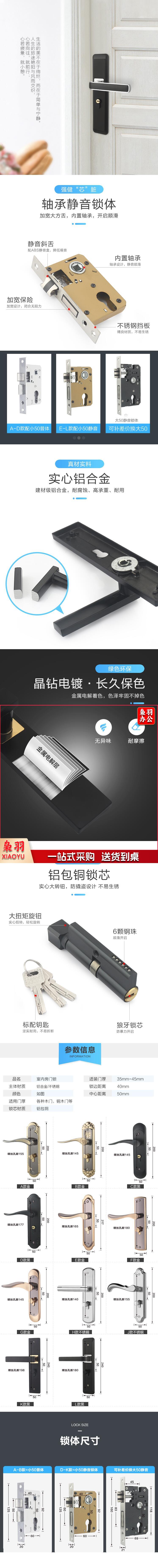 房门锁室内卧室实木门锁简约黑色静音门锁家用锁老式门把手通用型 F款