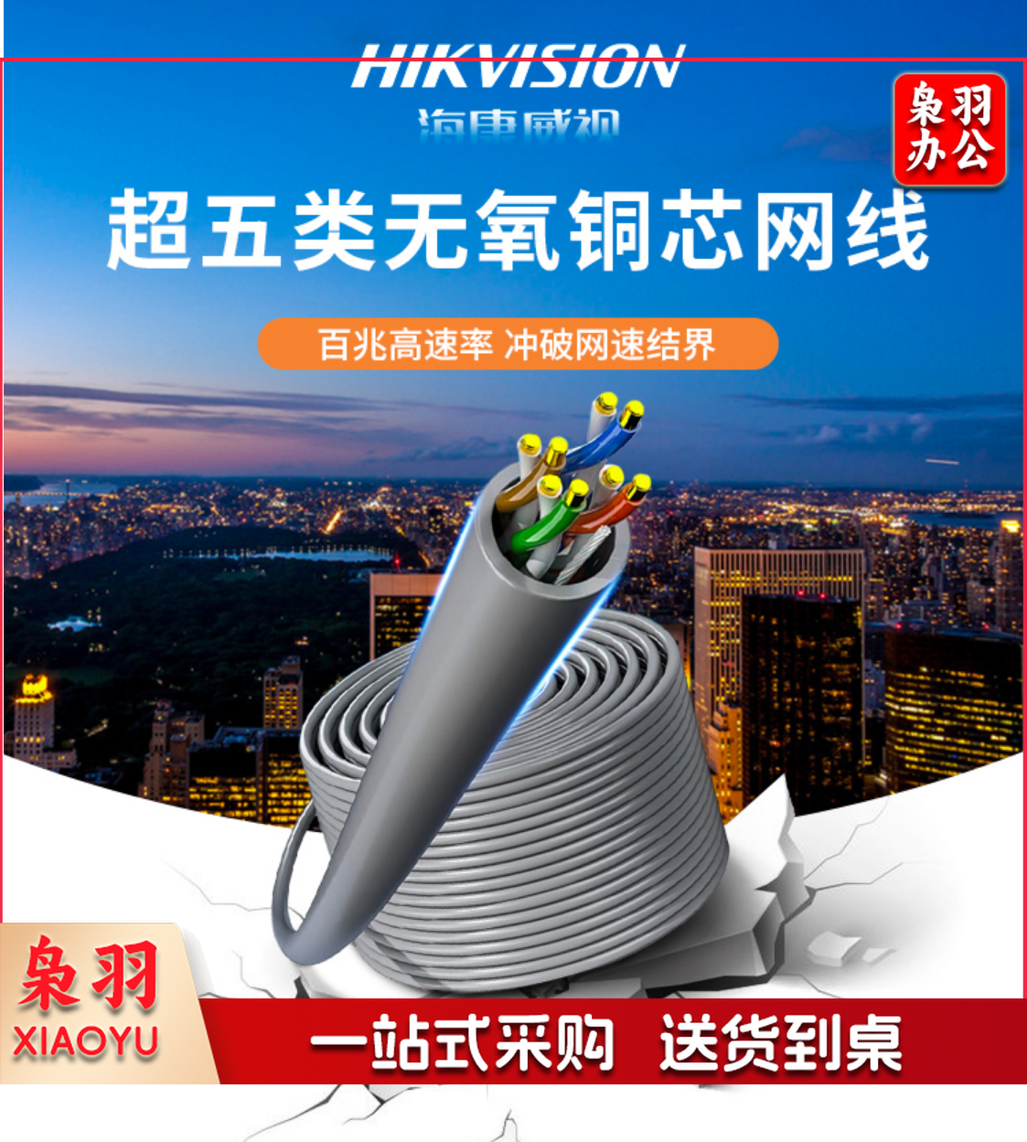 海康威视国标超五类网线非屏蔽高速网线纯铜网线国标网线蓝色整箱