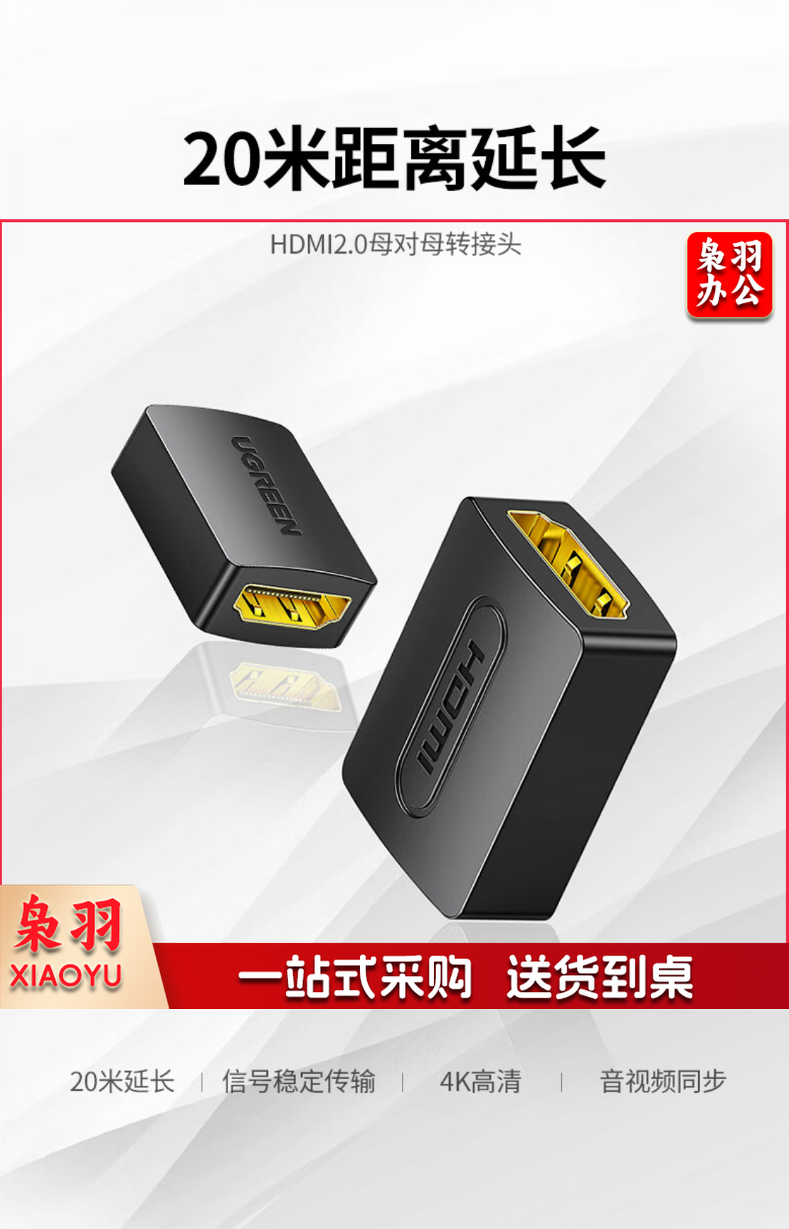 绿联(UGREEN)HDMI延长器转接头 母对母高清连接头2.0版 HDMI线对接头直通头串联延长线 黑色 20107