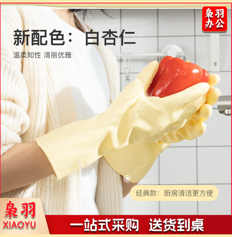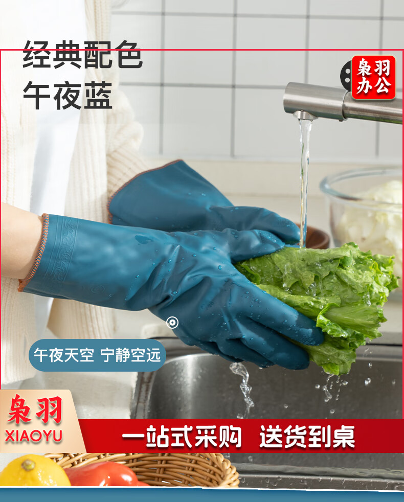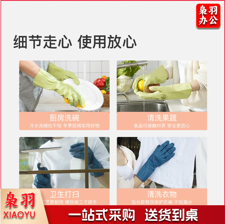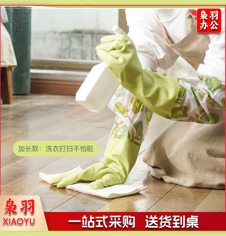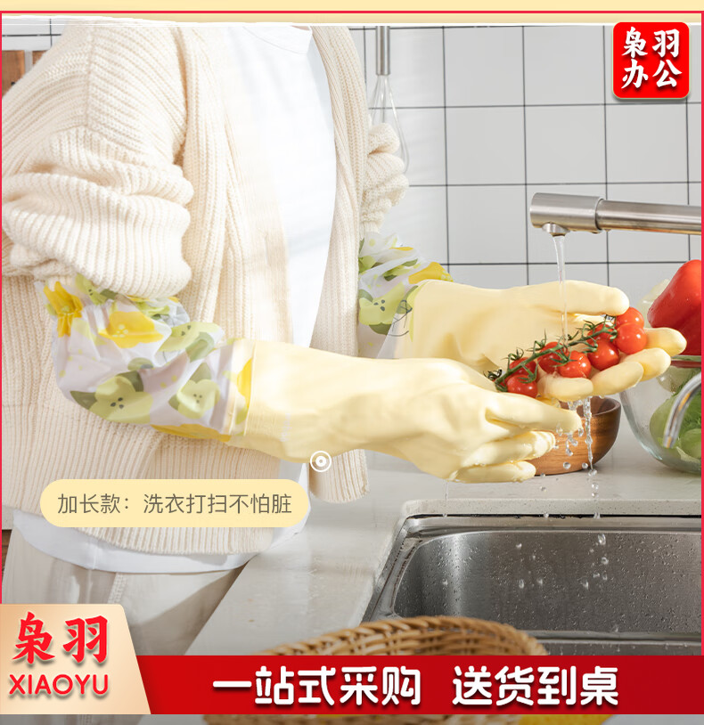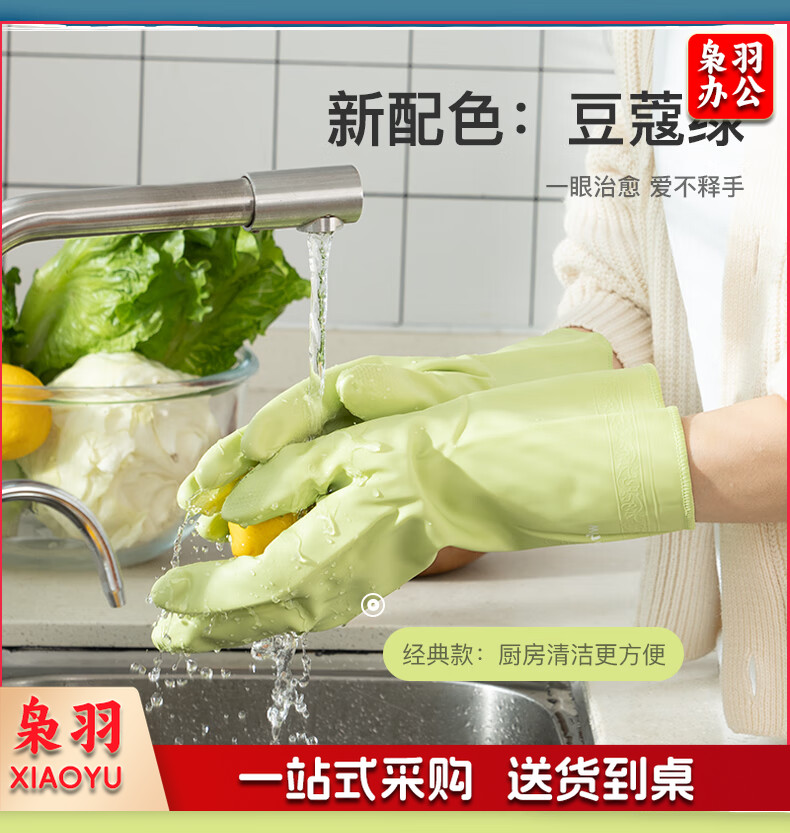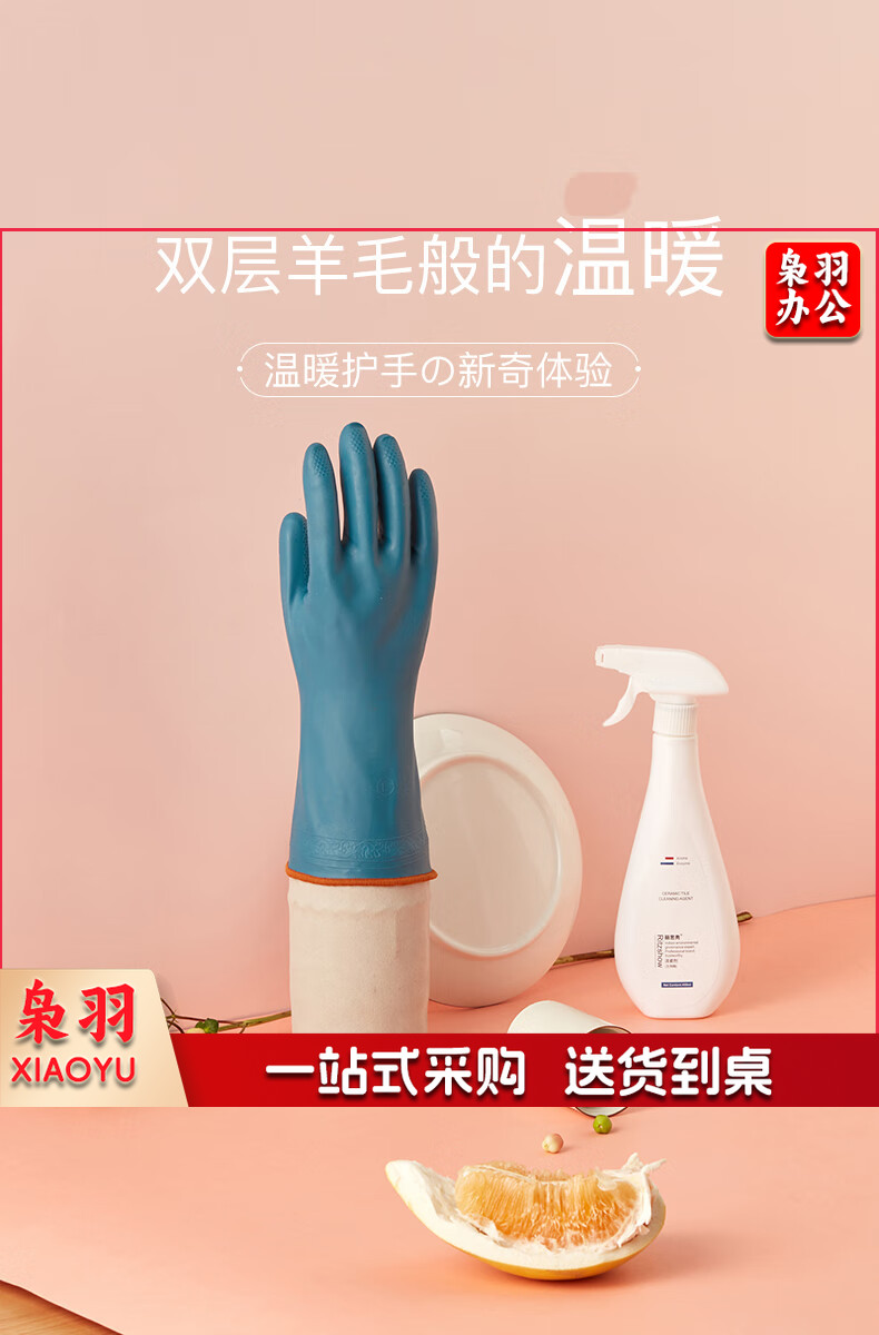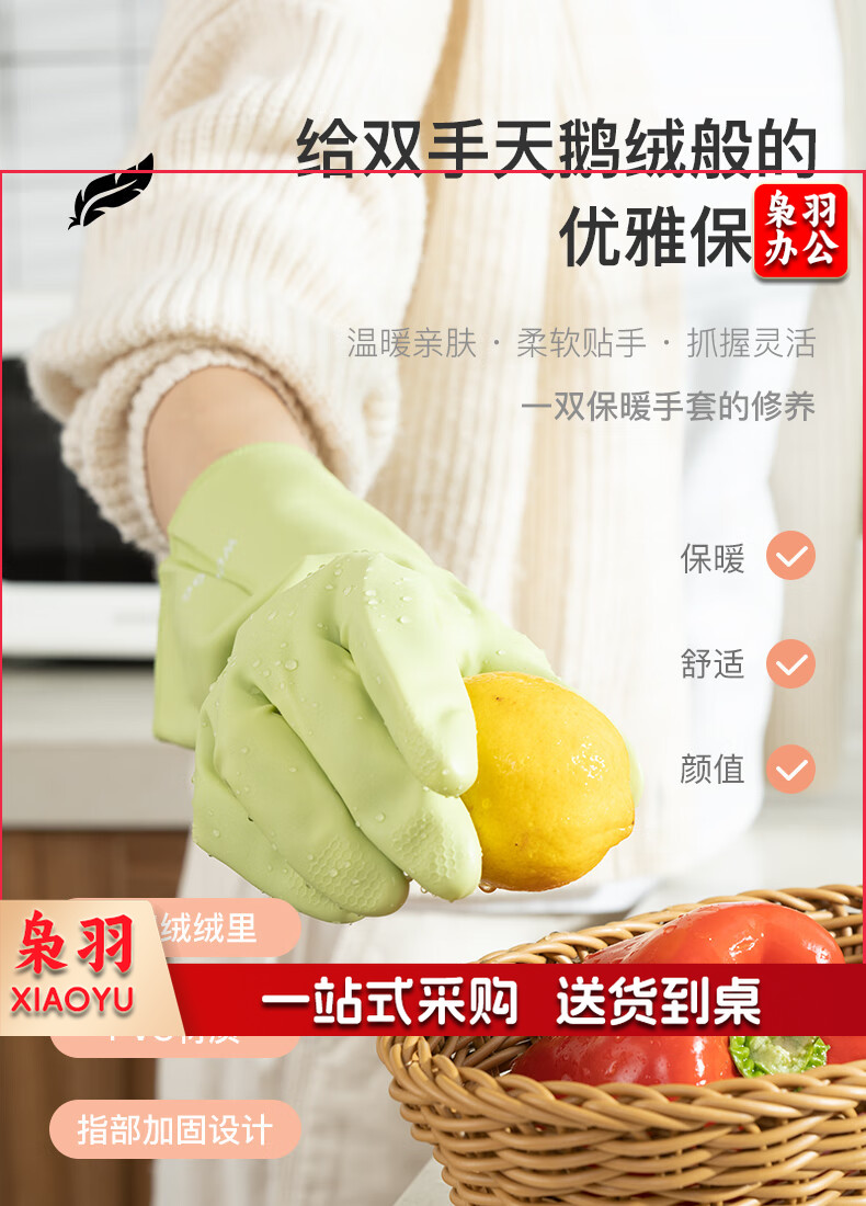 洗碗手套 短款型家务手套 橡胶皮手套 加厚加绒手套1双装