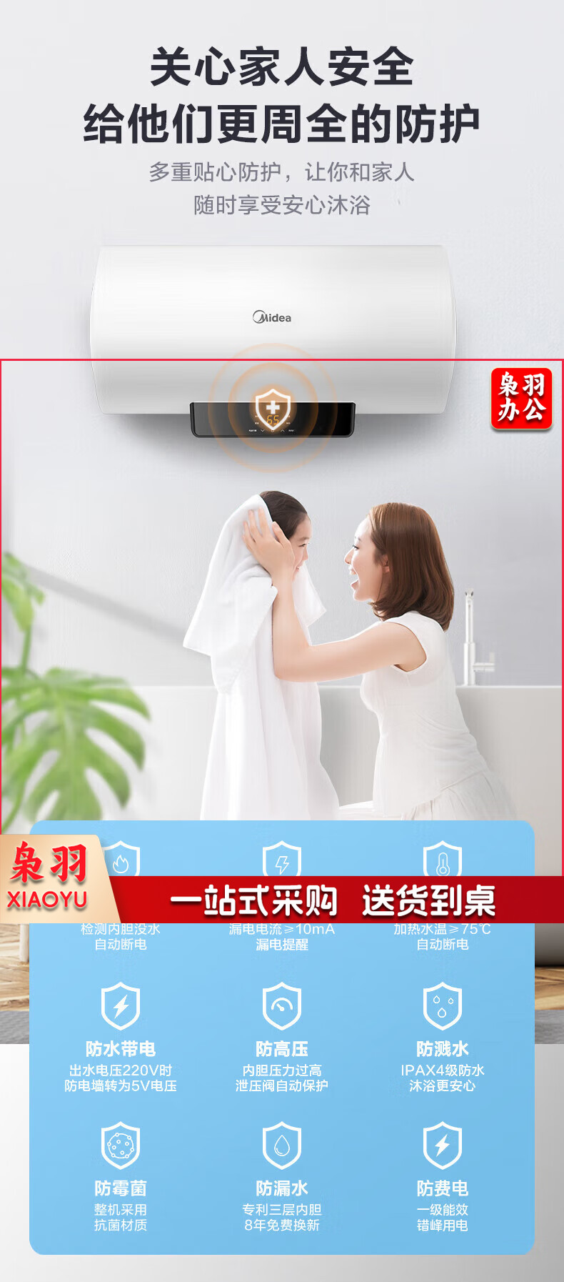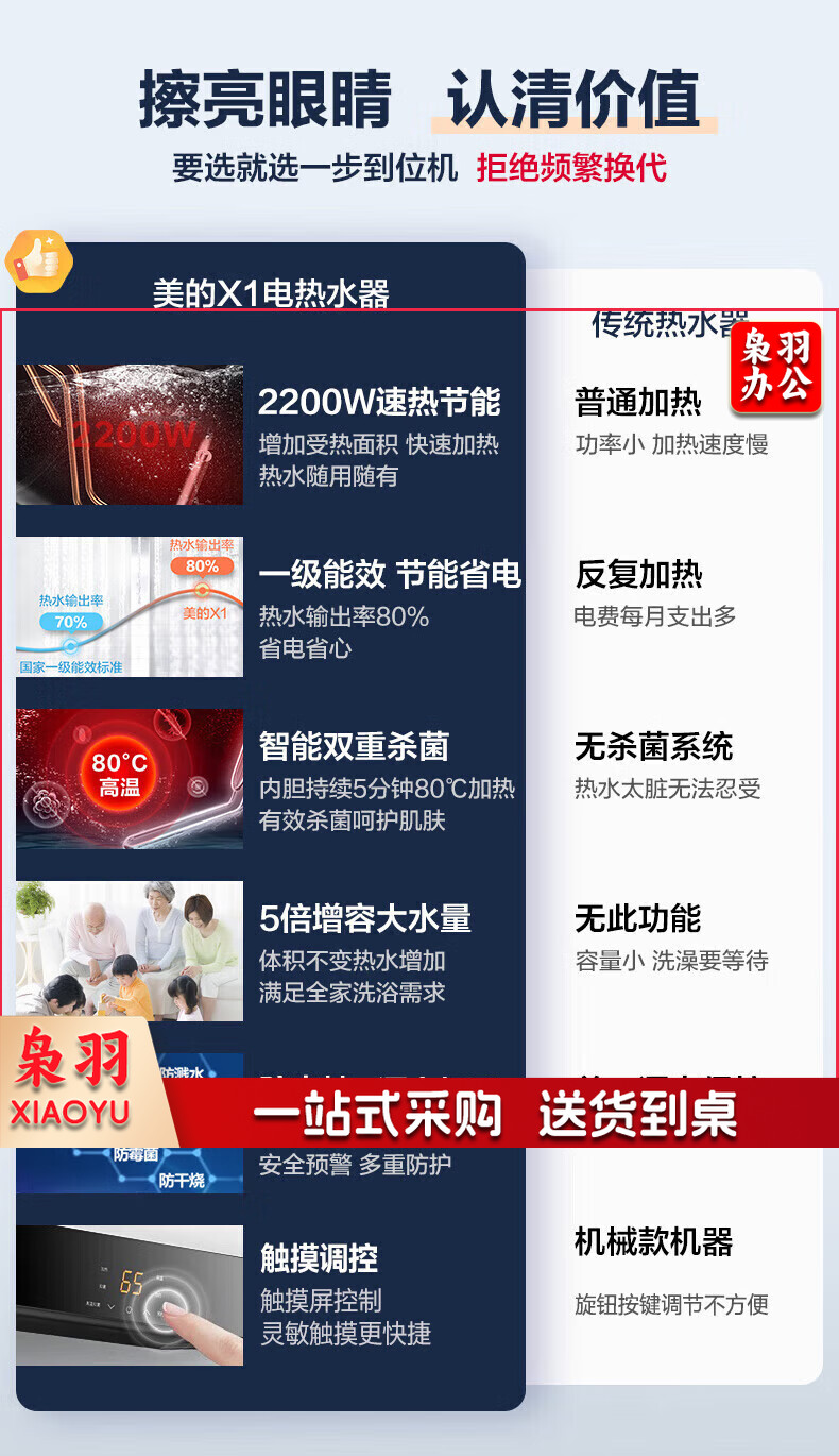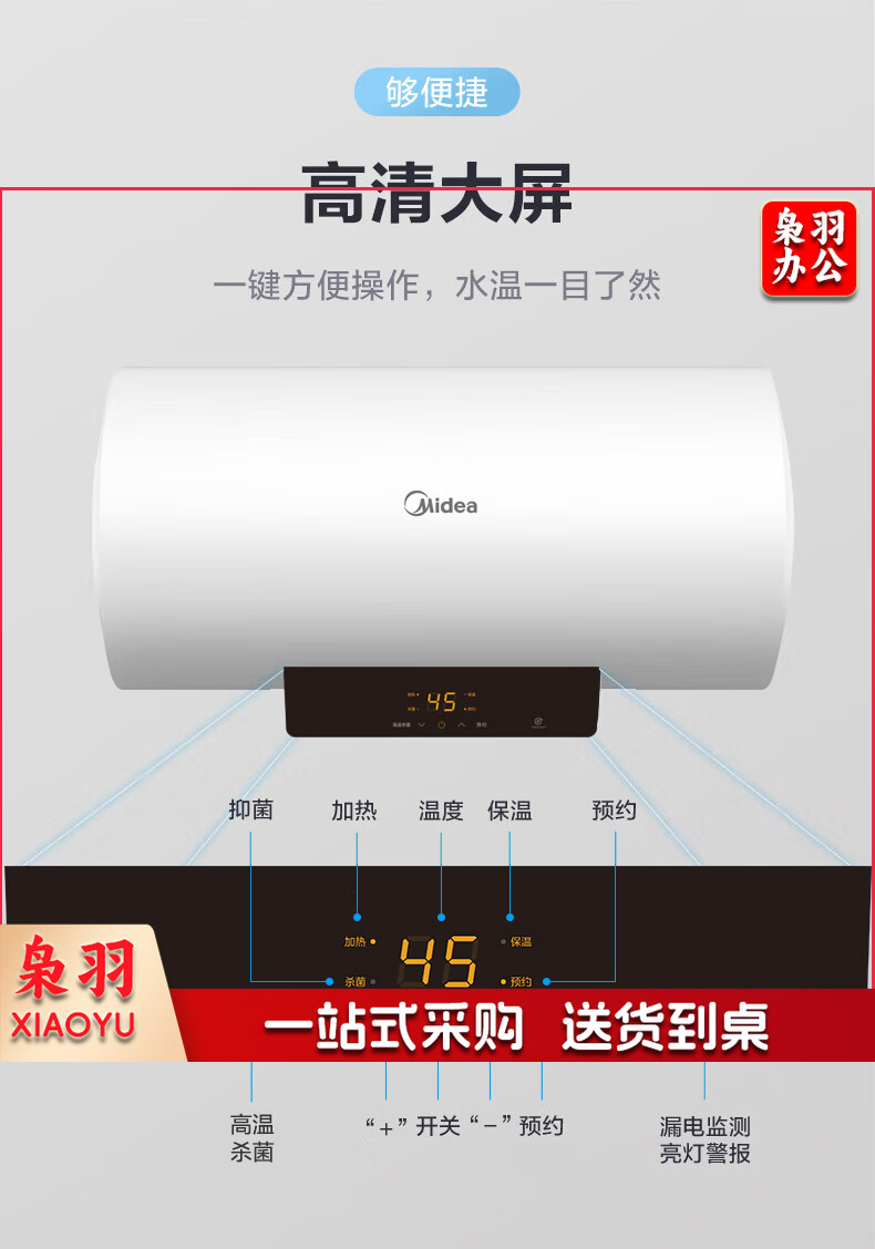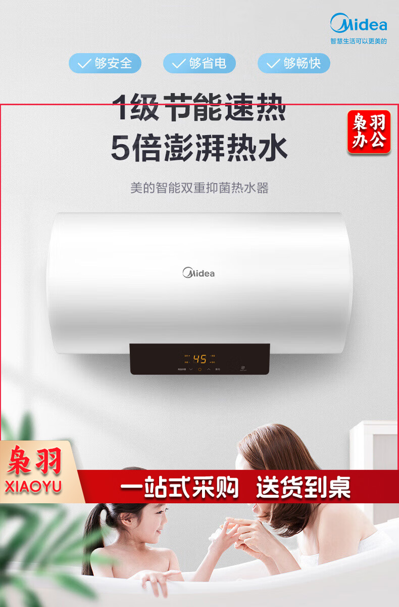 美的(Midea)储水式电热水器电家用速热数显一级能效节能家用安全加长防电墙智能家电6重防护X180L3300W全家接力洗【X1】