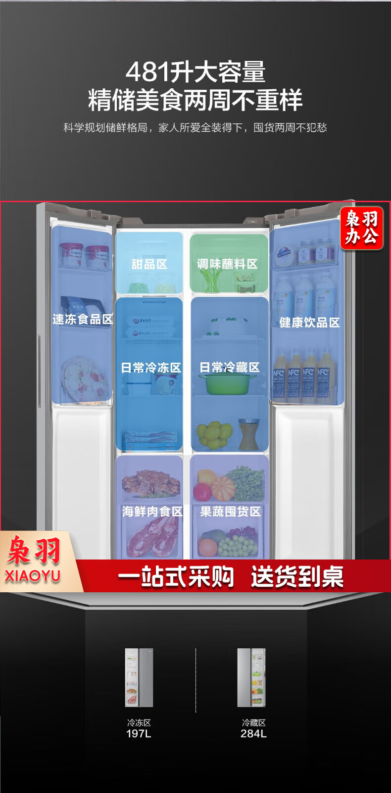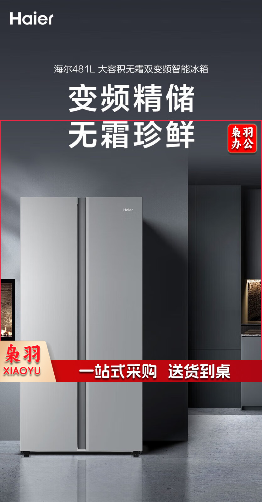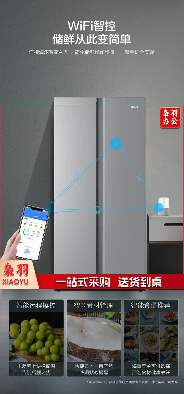 海尔(Haier)海尔冰箱481升对开门双门冰箱风冷无霜智能联网双变频节能超薄家用电冰箱双开门大冰箱