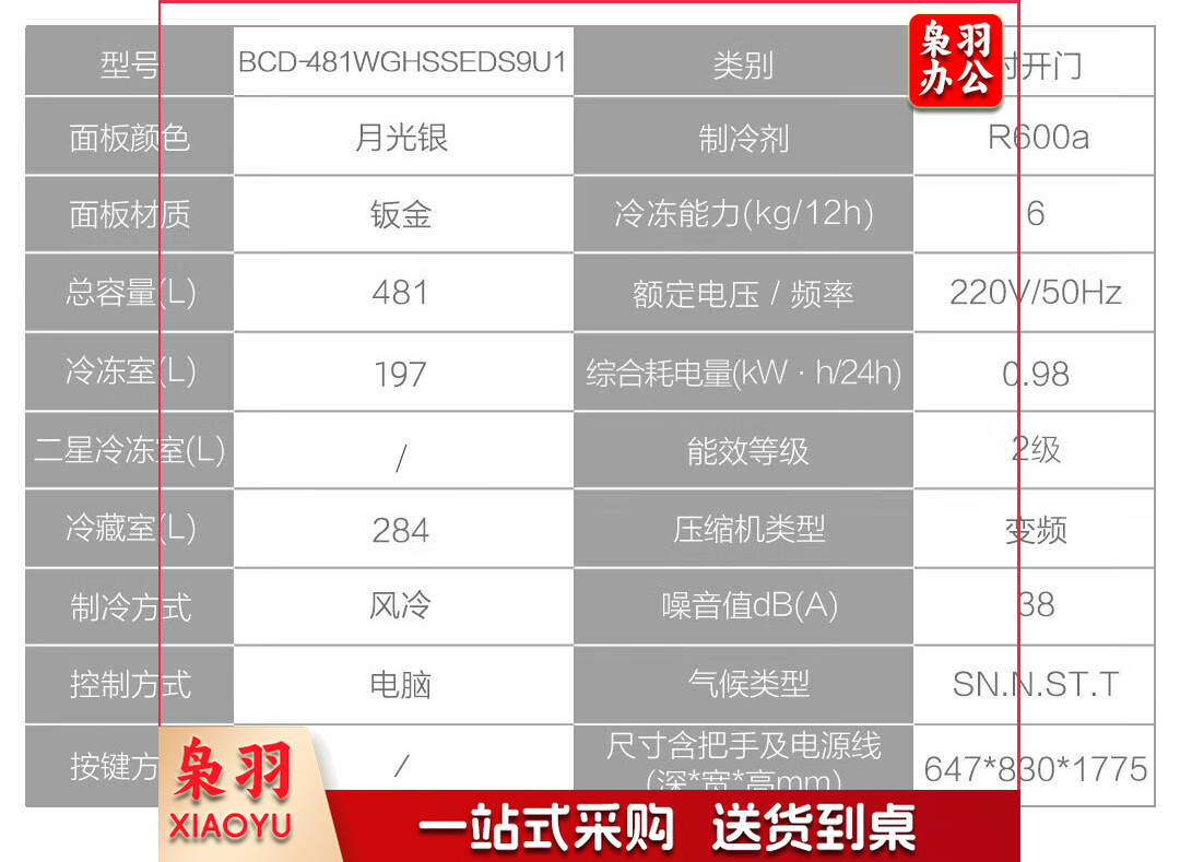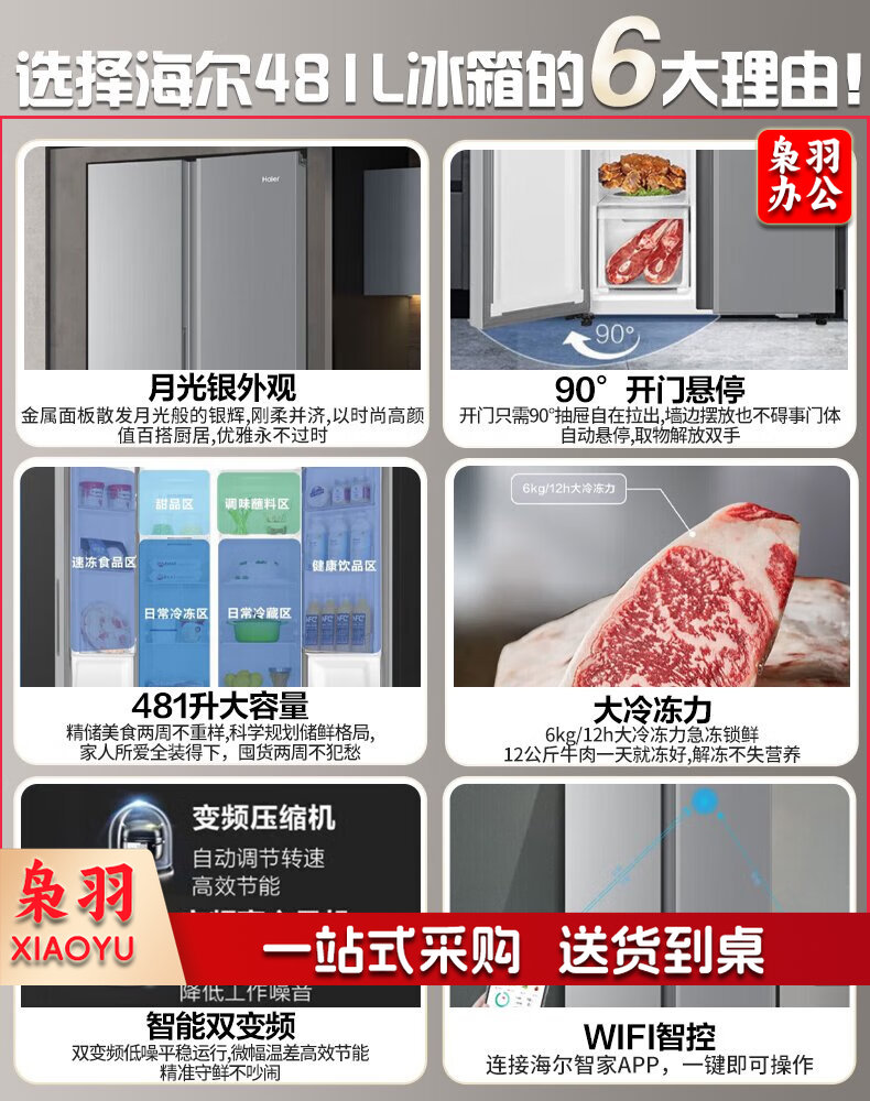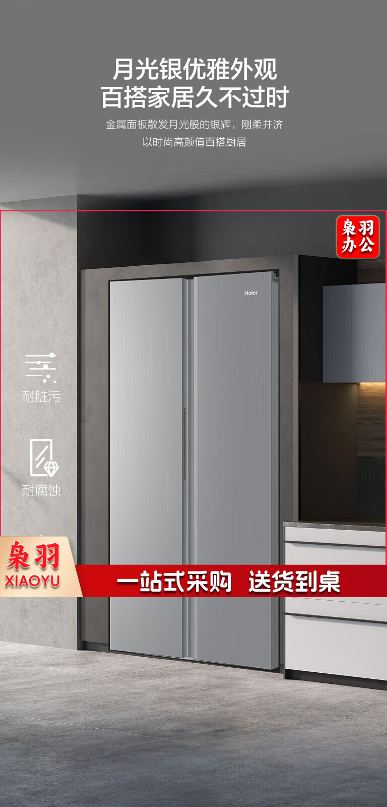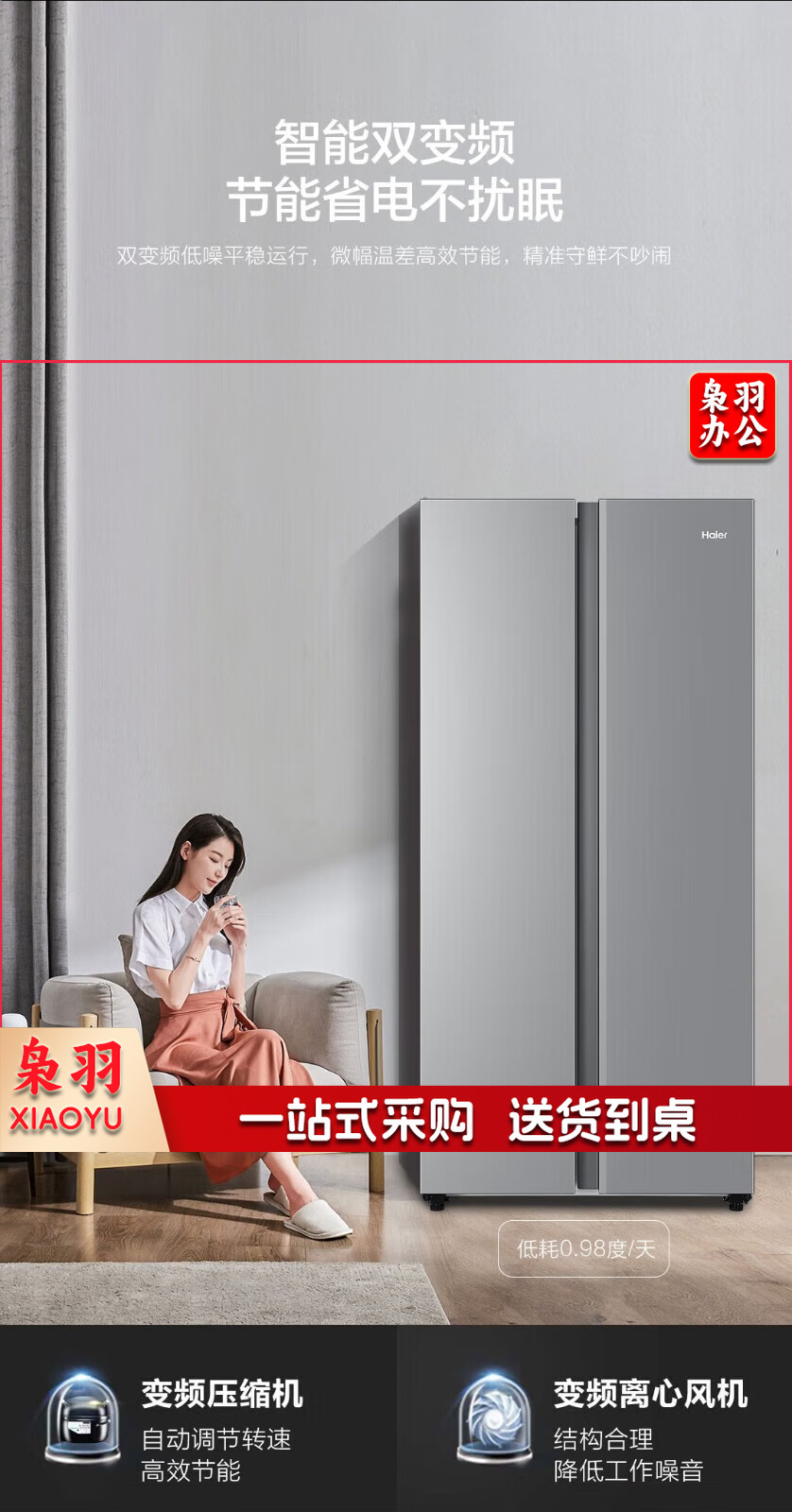 海尔(Haier)海尔冰箱481升对开门双门冰箱风冷无霜智能联网双变频节能超薄家用电冰箱双开门大冰箱