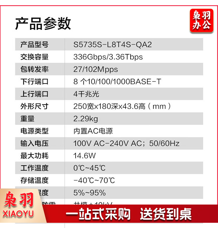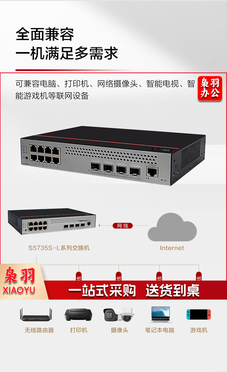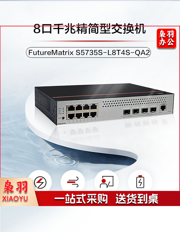 华为数通智选8口千兆交换机S5735S-L8T4S-QA2(A1)8电4光口汇聚弱三层全网管网络网线分线器光电光纤
