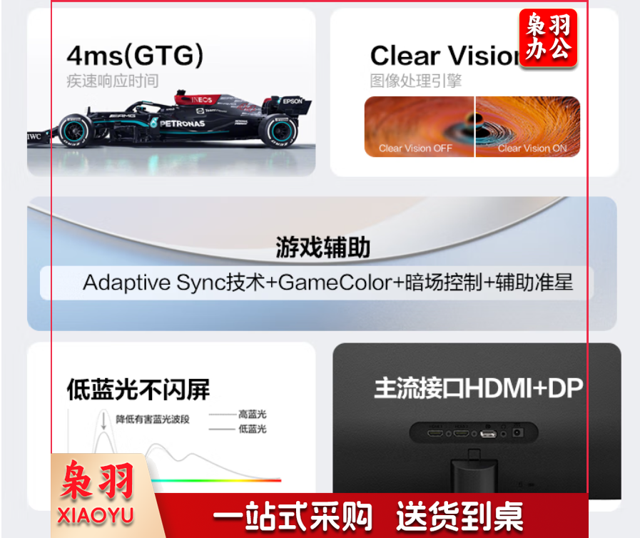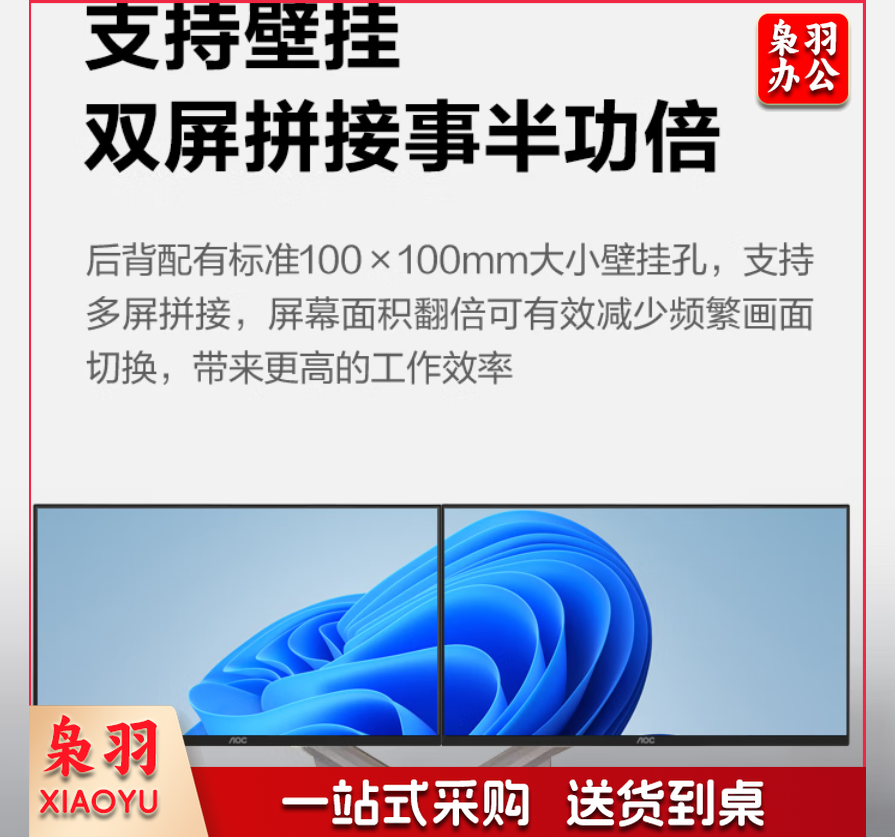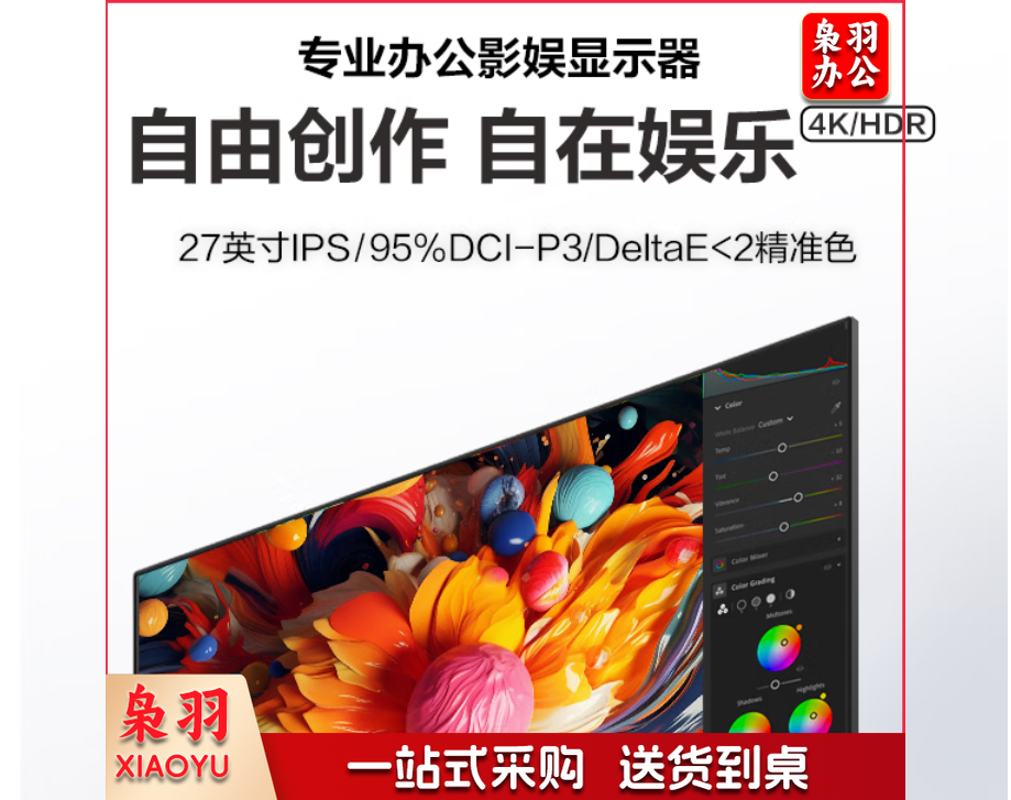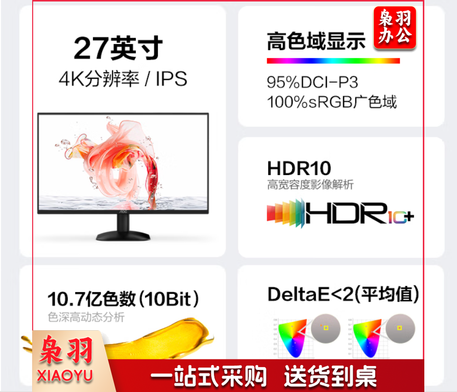 AOC 27英寸 4K IPS广色域 HDR 出厂校色 低蓝光不闪 节能认证 三边微边 超薄办公电脑显示器 U27B35