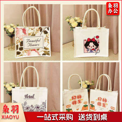手工DIY涂鸦麻布袋防水A4手提袋涂鸦LUCKY DAY横款大号送颜料