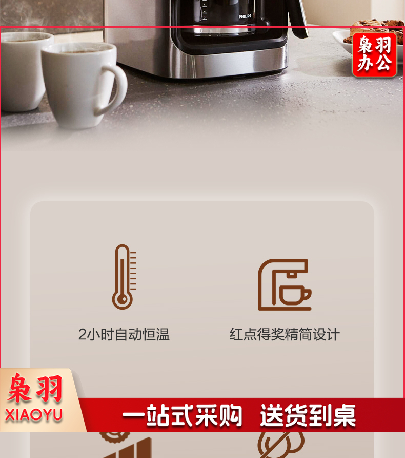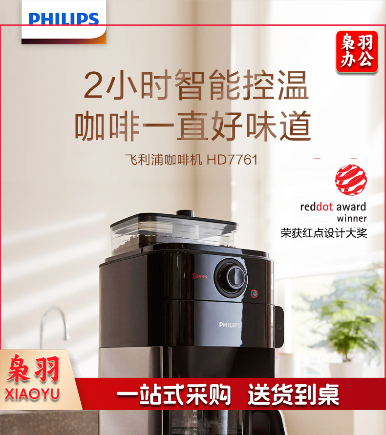 飞利浦(PHILIPS) HD7761 美式 咖 啡机全自动家用 智能控温 豆粉两用 自动磨豆 自动清洗壶
