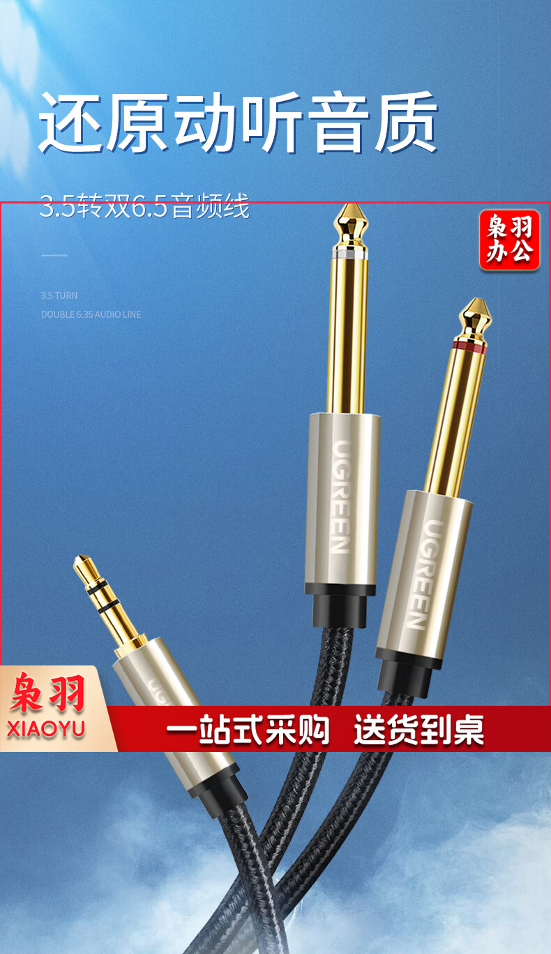 绿联40792 3.5mm转双6.5mm一分二音频线 6.35大二芯立体声转接线手机笔记本电脑调音台音响箱连接线 棉网编织 2米