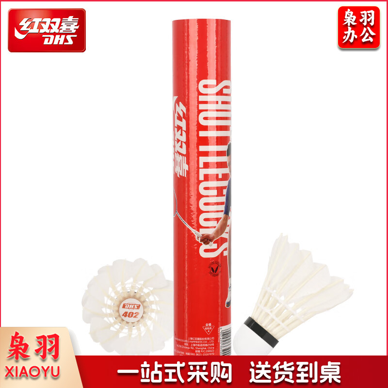 红双喜(DHS)羽毛球402超耐打王训练比赛鹅毛 12只装 单位:筒