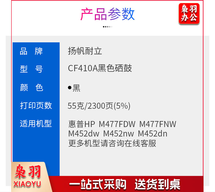 扬帆耐立YFHC CF410A(410A)硒鼓 黑色 适用惠普 M477FDW/M477FNW/M452dw/M452nw/M452dn-商专版