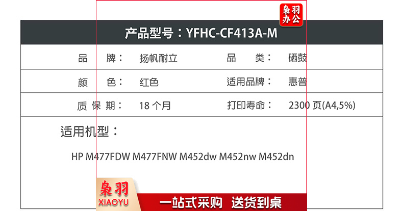 扬帆耐立YFHC CF413A(410A)红鼓(带芯片)HP M477FDW M477FNW M452dw M452nw M452dn