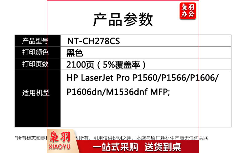 商品名称:欣格NT-CH278CS 商品毛重:0.97kg 商品产地:中国大陆 类型:通用耗材