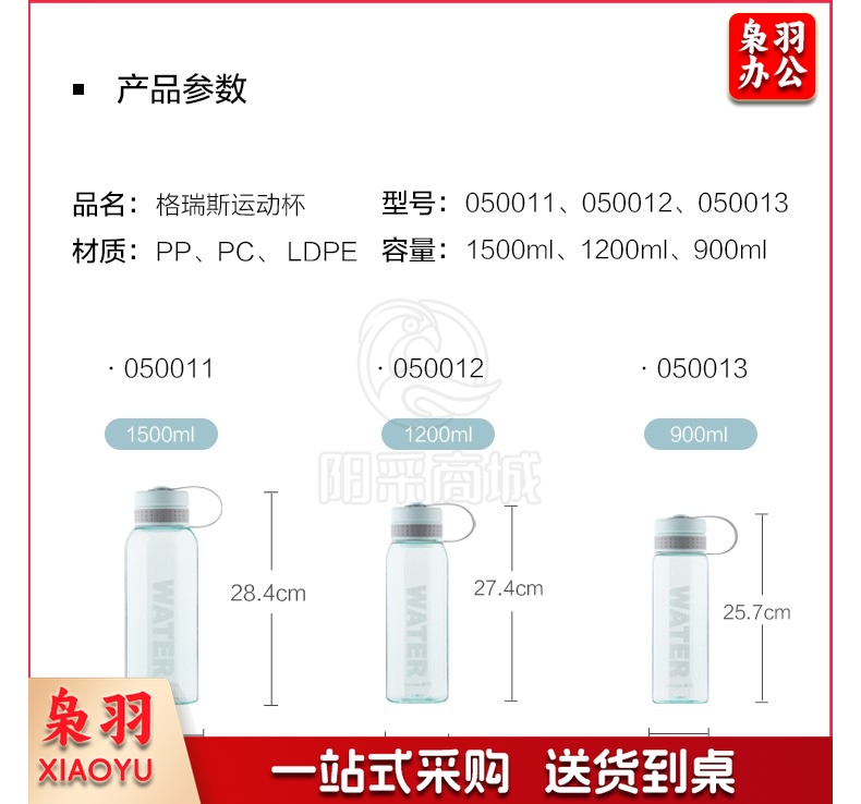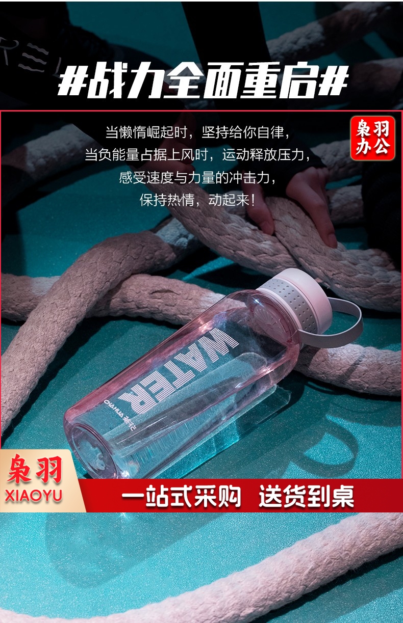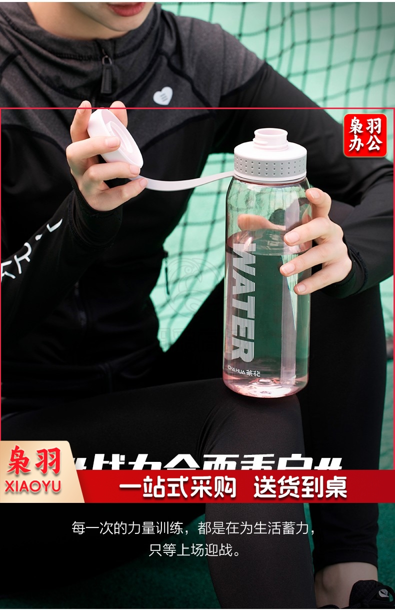 茶花格瑞斯水杯大容量塑料水杯男便携水瓶杯户外运动大号水壶女 浅粉色1200ml【050012】