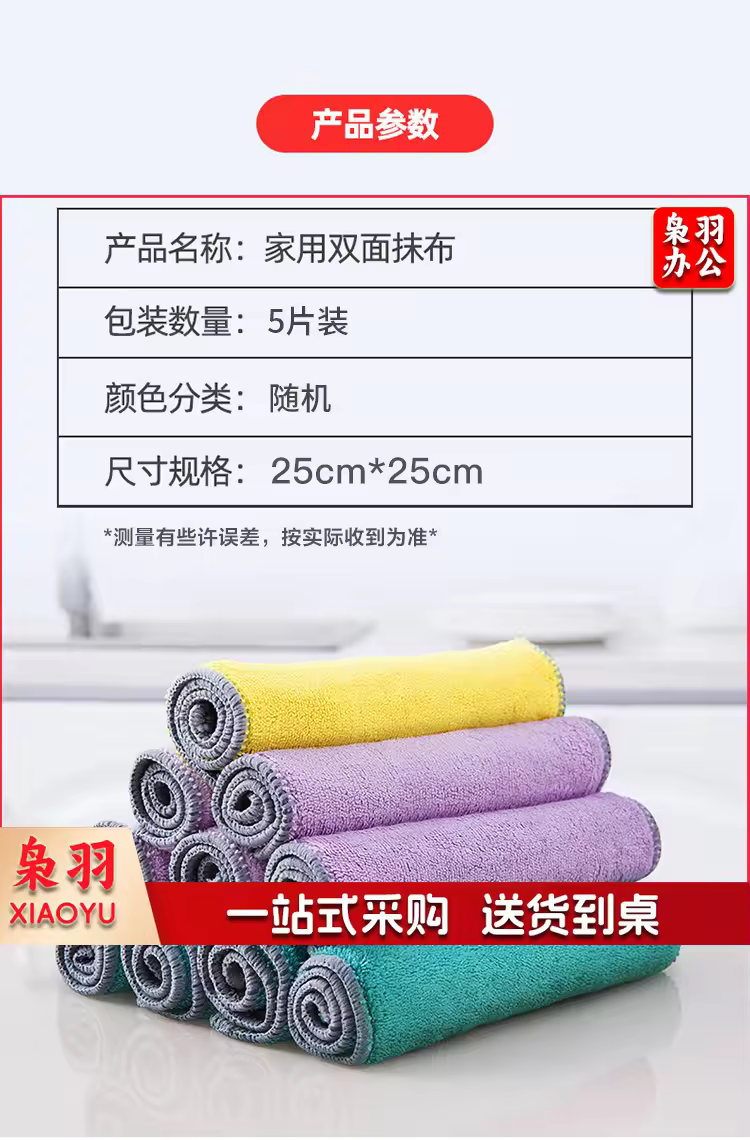 雅高 抹布家务厨房洗车擦车毛巾洗碗布巾【25*25 5片装】百洁布去油