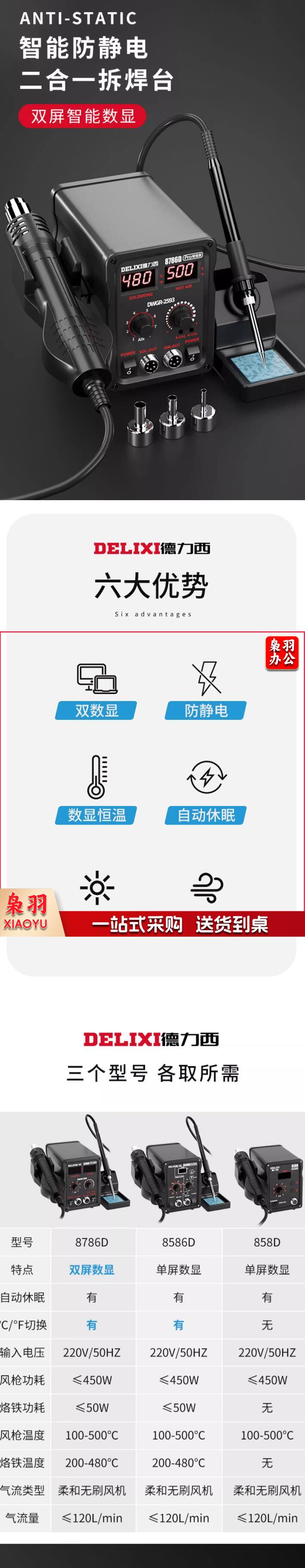 德力西电烙铁热风枪焊台二合一 焊接工具8786d高频拆焊台