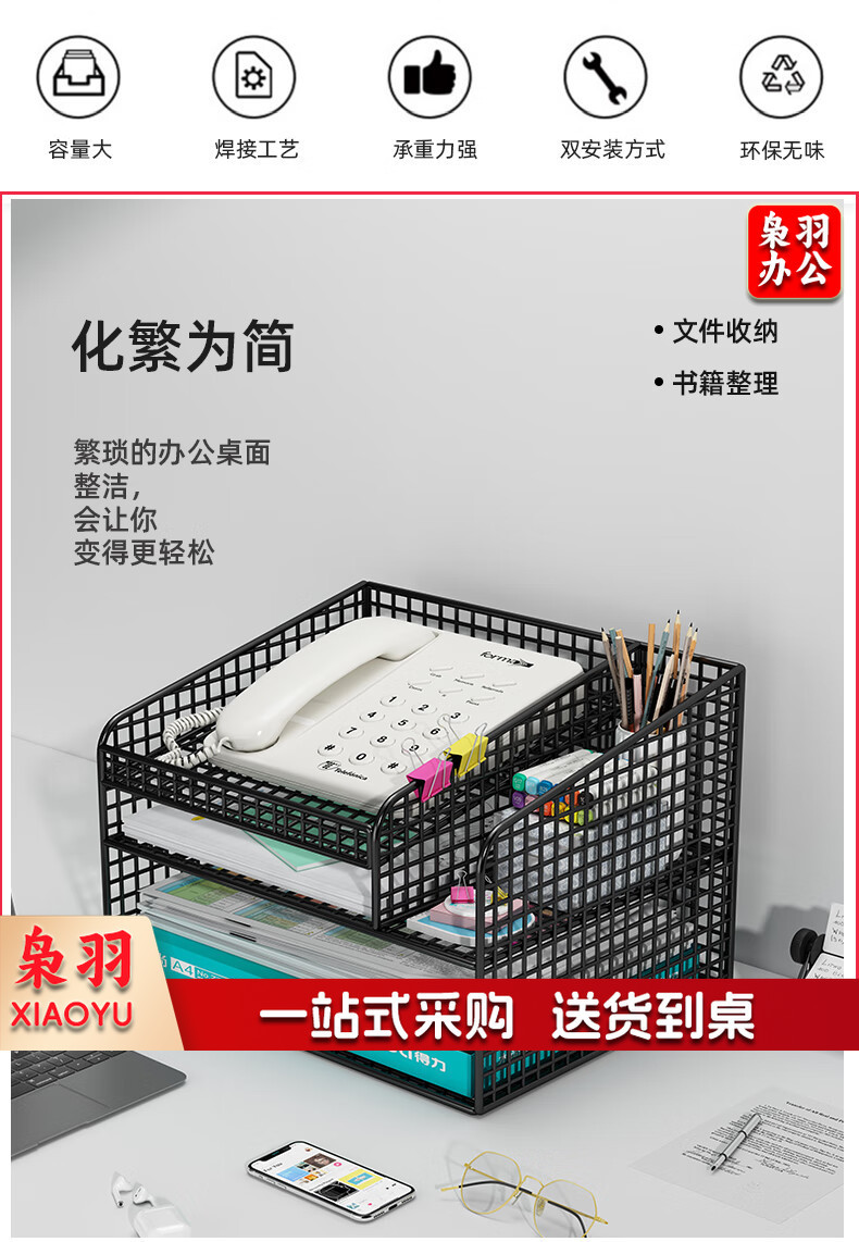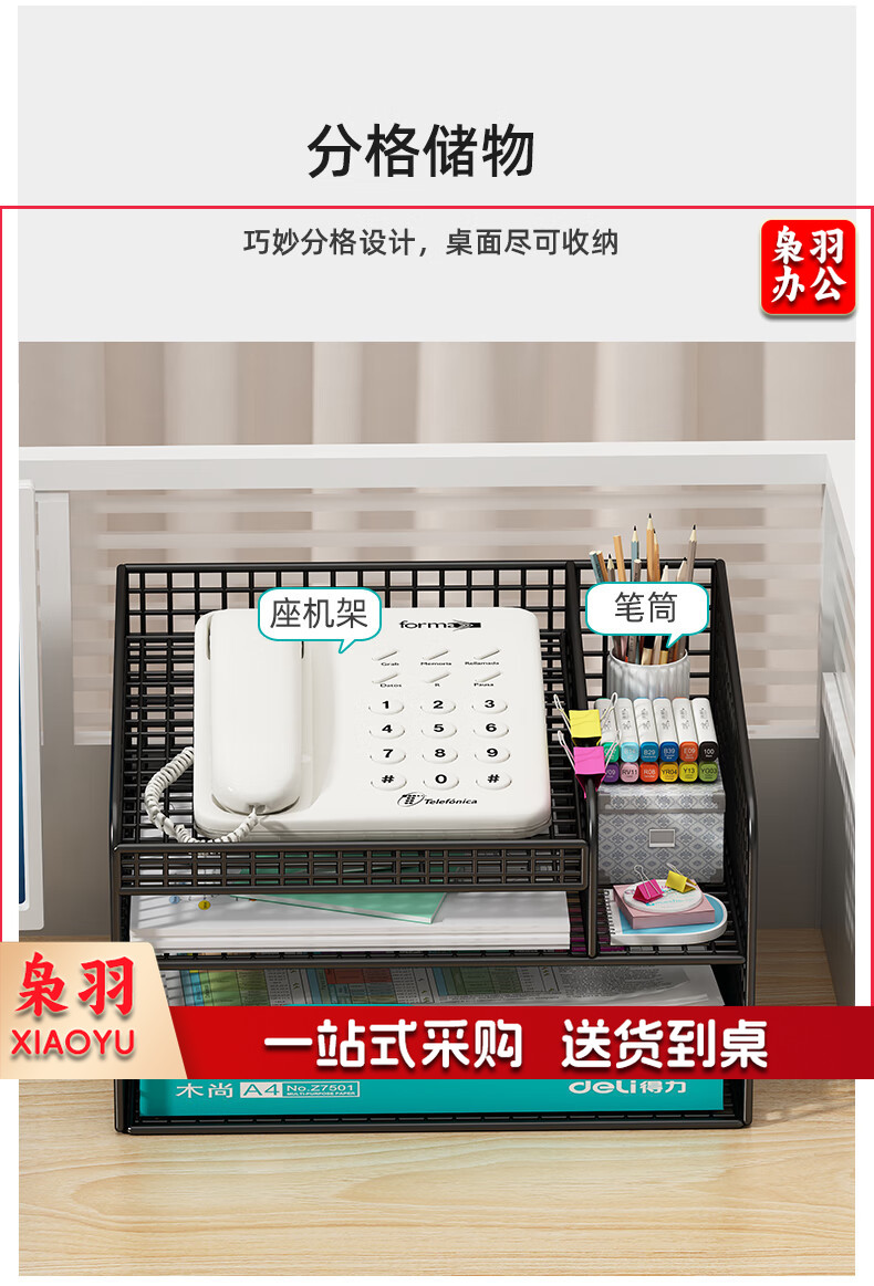 座机电话支架 电话座机支架固定电话机置物架工位办公桌面座机架 黑中号多区分类一体整装