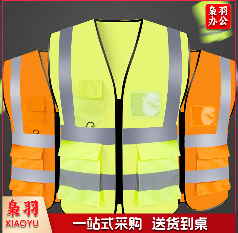 经济款多口袋反光背心 SVM-1047 L 荧光黄