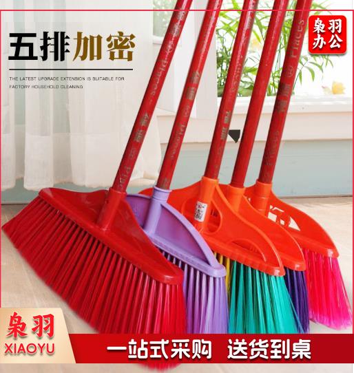 木柄塑料扫把单个家用学校扫帚硬毛环卫宿舍工车间厂普通扫帚硬毛笤帚批发 斜头软毛(杆长80cm)30把起送