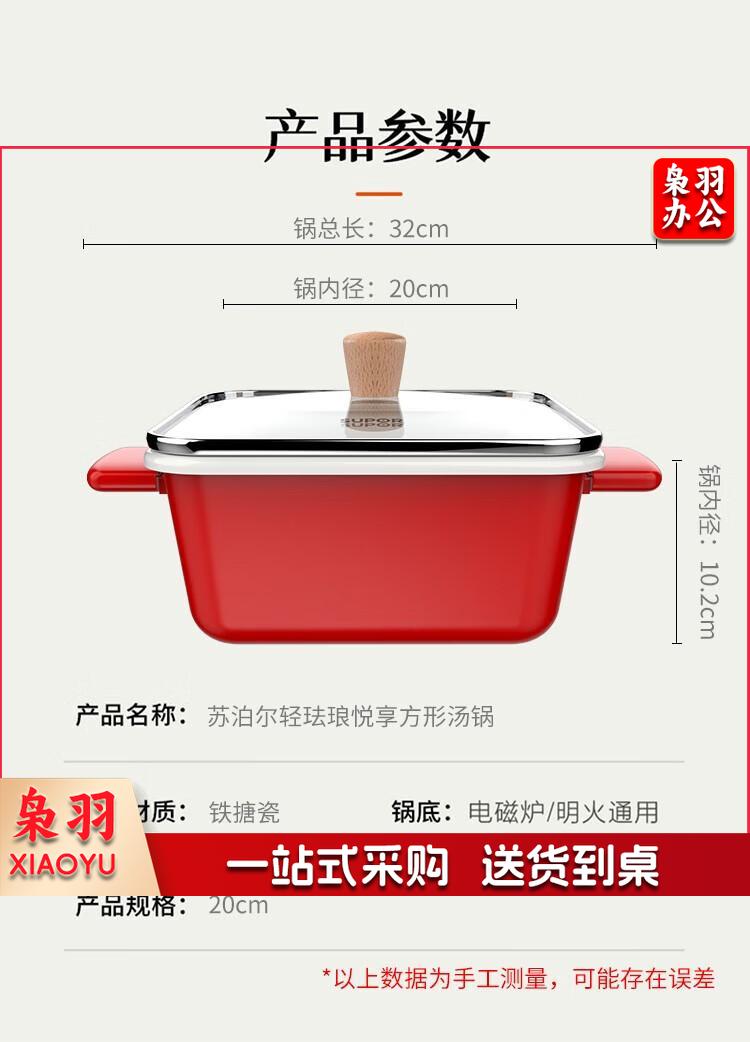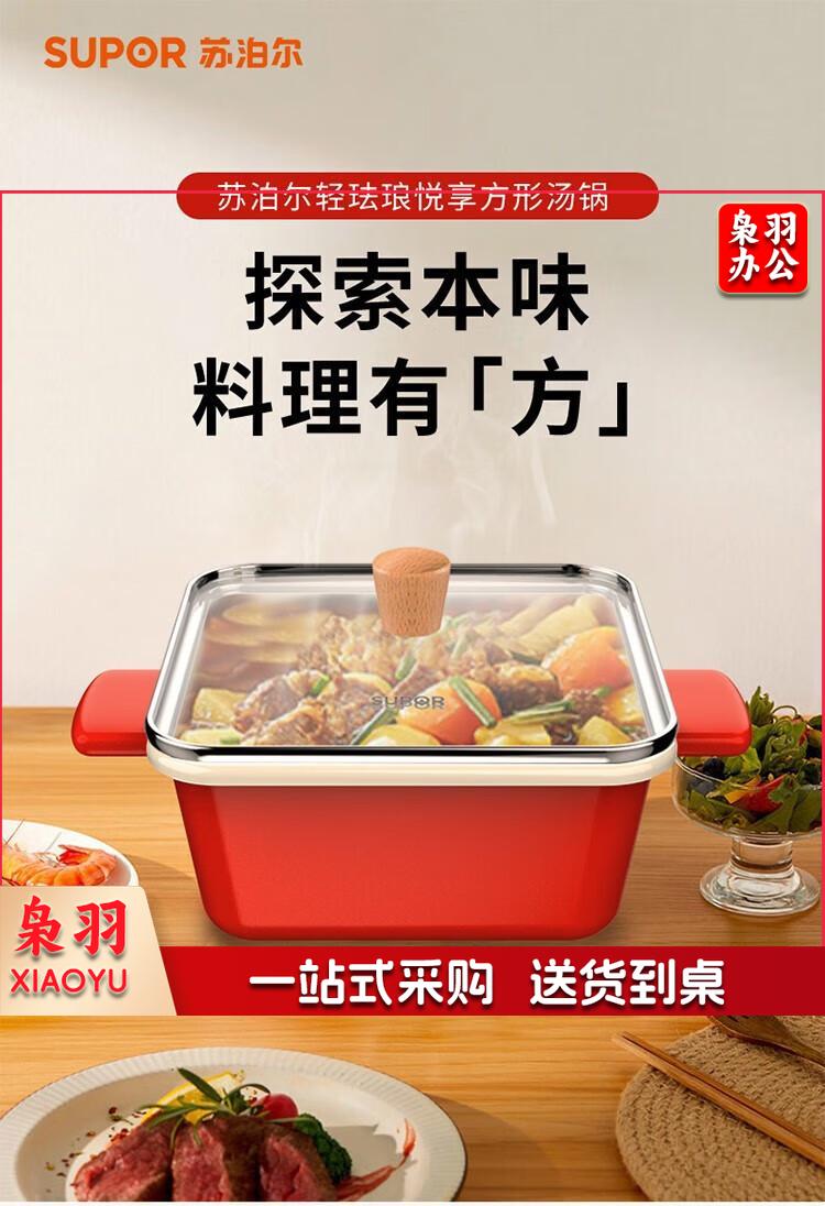苏泊尔(SUPOR)辅食料理机轻珐琅悦享方形汤锅20CM 电磁炉明火锅具 VT20QF01烹调电器