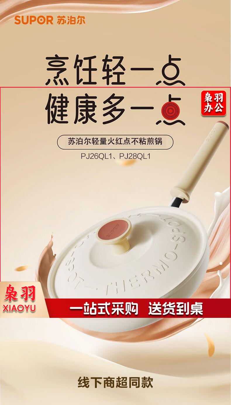 苏泊尔(SUPOR)平底锅不粘锅轻量火红点聚油煎锅28cm牛排煎锅煎蛋锅煎饼 PJ28QL1烹调电器
