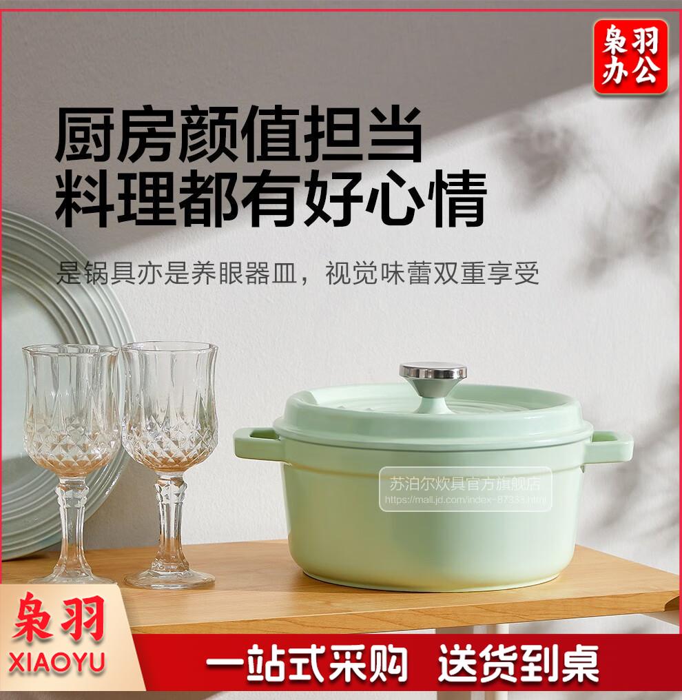 苏泊尔(SUPOR)汤锅珐琅锅铸铁锅炖锅煮锅多容量可选搪瓷锅煲汤燃气电磁炉通用 直径24cm 茶白-ET24MF01-C烹调电器