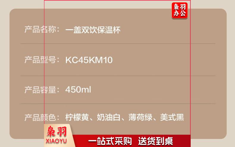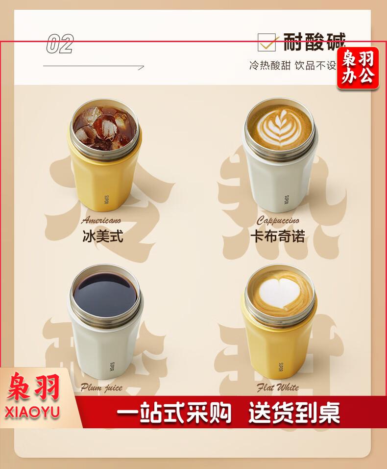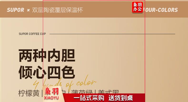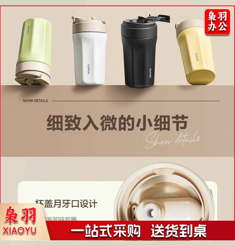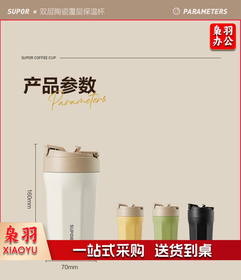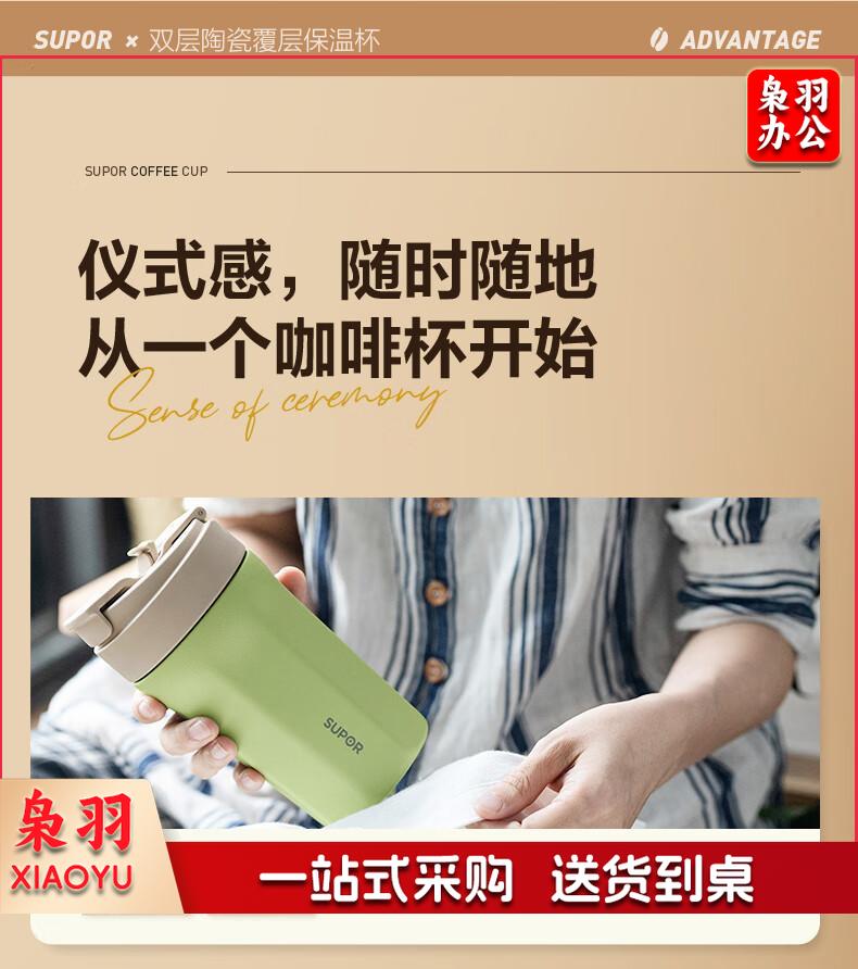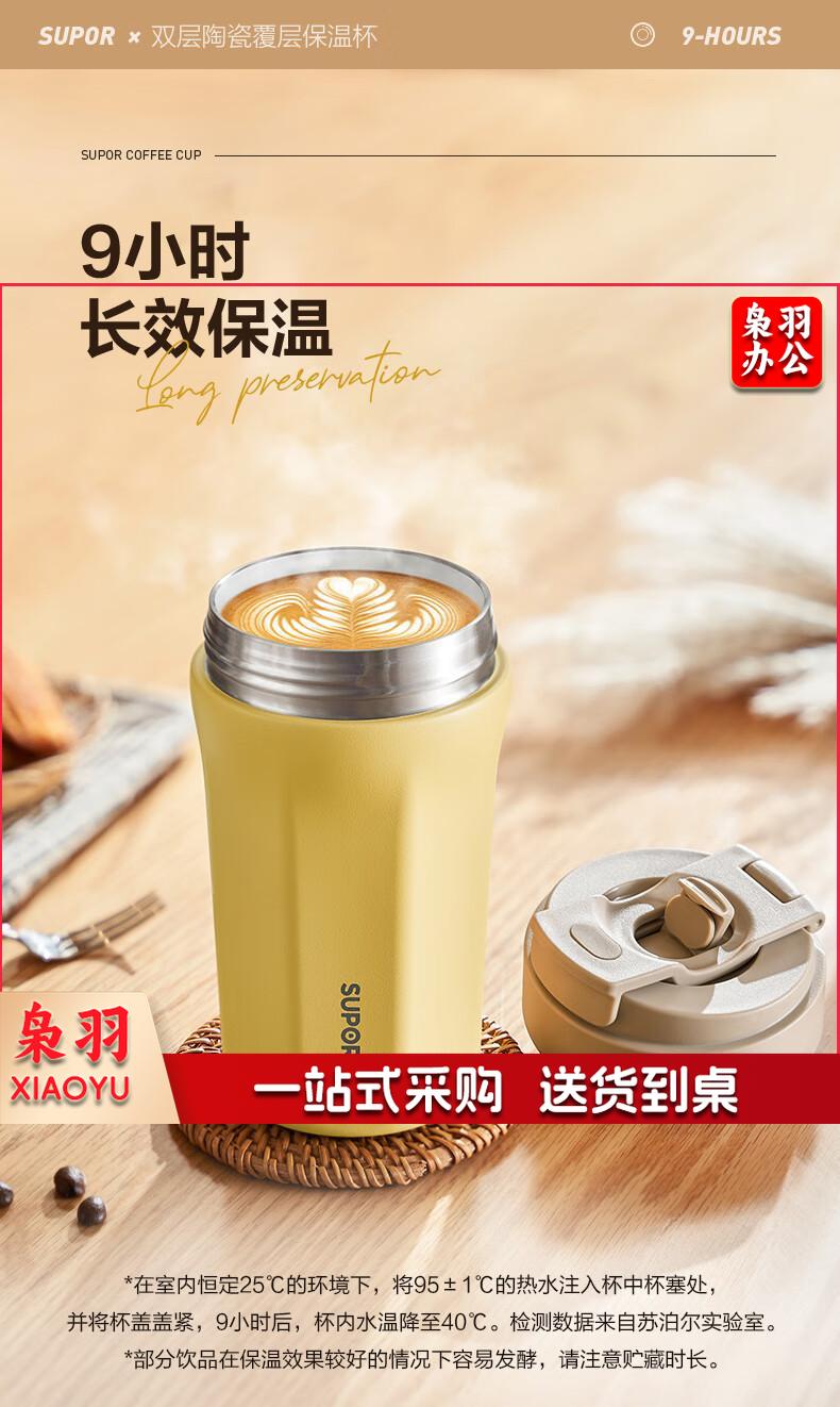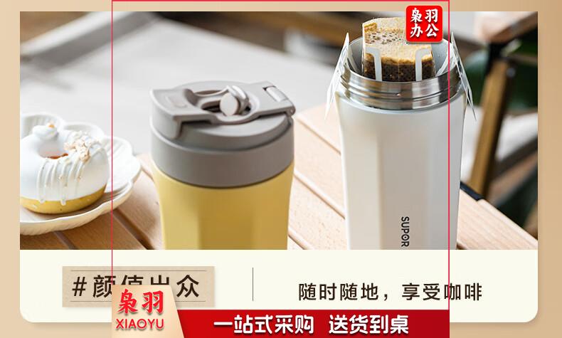 苏泊尔(SUPOR) 双层陶瓷覆层内胆吸管保温便携水杯子450mL 奶油白 KC45KM10烹调电器