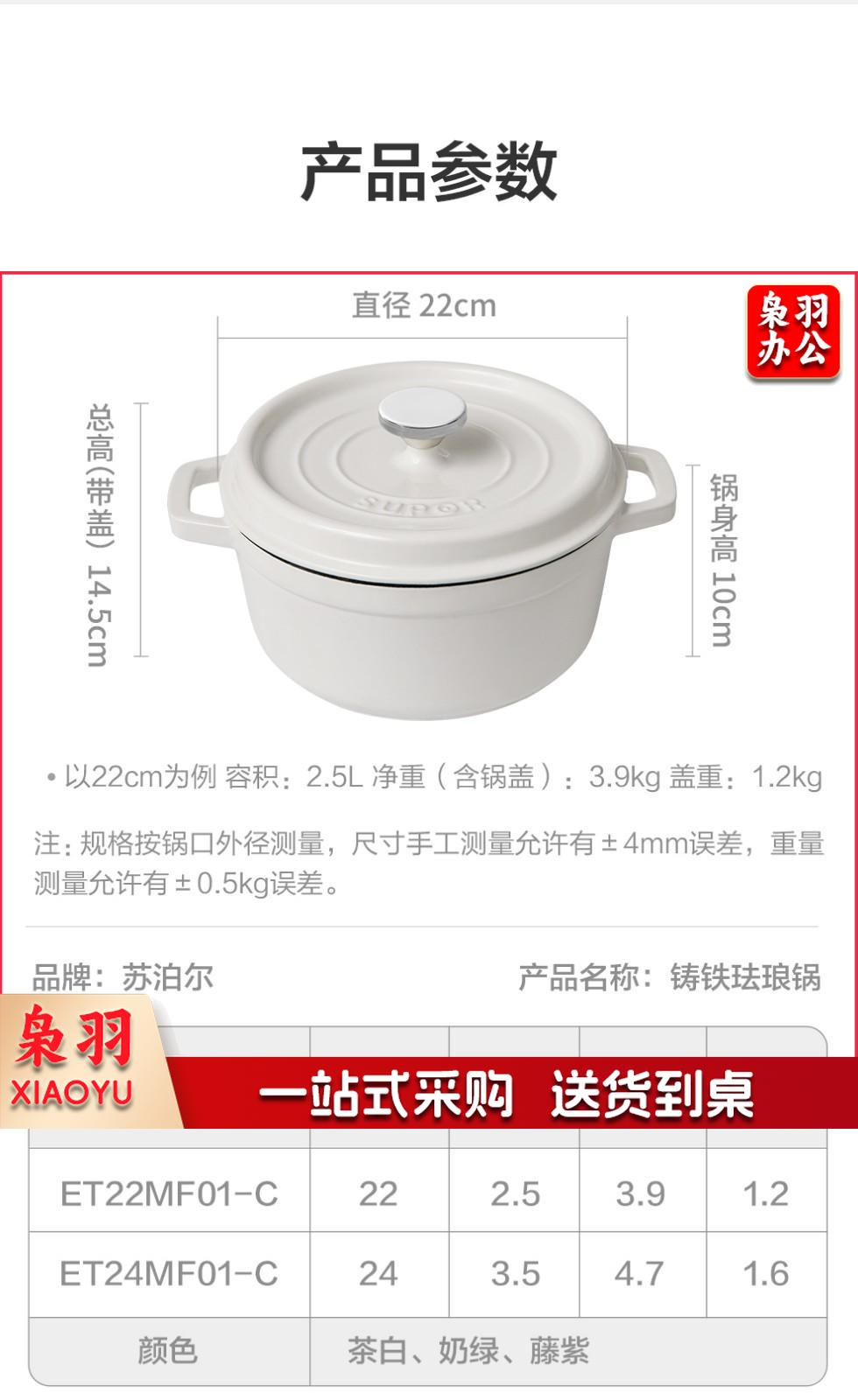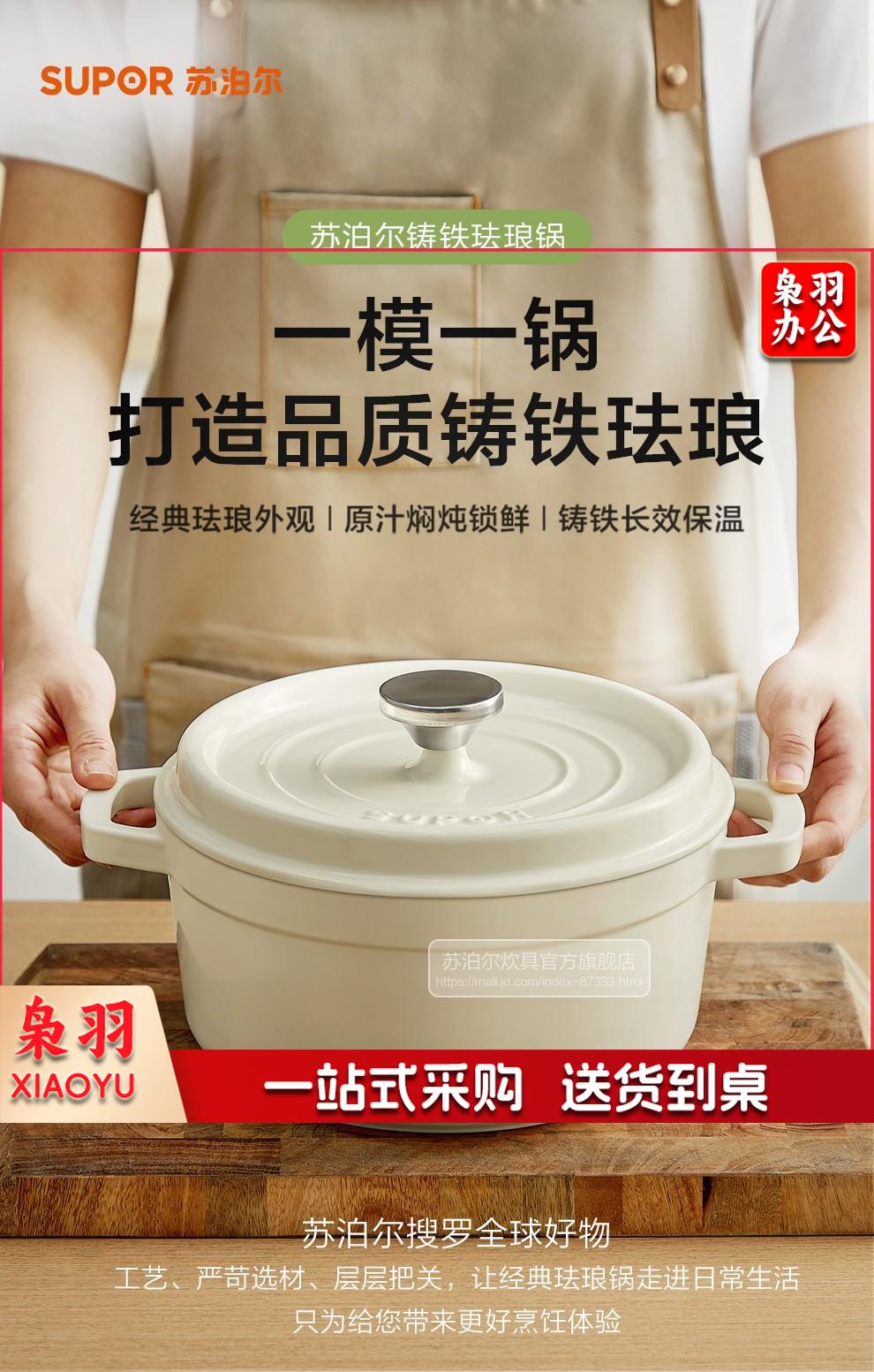 苏泊尔(SUPOR)汤锅珐琅锅铸铁锅炖锅煮锅多容量可选搪瓷锅煲汤燃气电磁炉通用 直径22cm罗勒绿ET22MF01-BA烹调电器